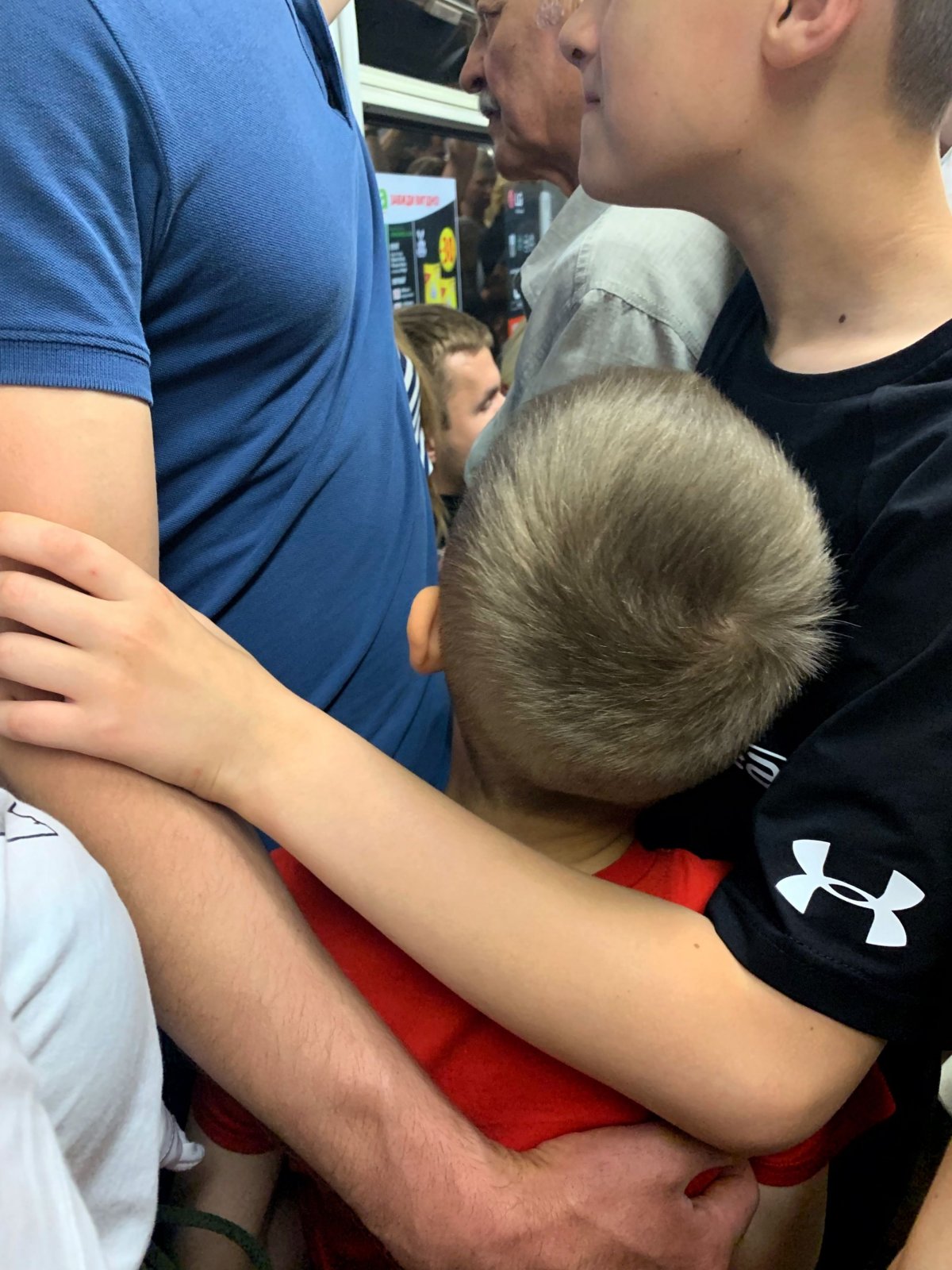 Tady v Kyjevě se díváte na lidi a vidíte nejen lidi bdělé, vnímající vše kolem sebe, ale taky neuvěřitelnou soudržnost a sílu rodin. Ať už na náměstí Majdan, kde každý večer do noci tráví lidé s dětmi volný čas, vidíte to ale i v obyčejném metru. Přelidněném, hlava na hlavě, bojíte se, že jestli vagón prudce zastaví, spadnete, protože se nemáte čeho držet… A pak vás paralyzuje pohled na tátu s dvěma kluky. Taky jsou uvězněni v hloučku lidí a nemají se čeho držet… Rádoby nestabilní. Přitom ale stabilnější než socha Matky Vlasti. Drží se totiž jeden druhého. Byl to pro mě asi ten nejkrásnější a nejvíc srdcervoucí výjev za celé 4 ukrajinské dny. Starší brácha starostlivě objímá mladšího kolem ramen, tatínek se stejnou starostlivostí a láskou drží kolem ramen oba kluky. Všichni se na sebe smějí. Tolik lásky, péče o druhé, úcty k druhým a pokory může být v takovém malinkatém lidském trojúhelníku! A přesně tohle je pro mě Ukrajina a už navždycky bude. Krásní lidi, krásní na duši, a krásně člověku, když to vidí...