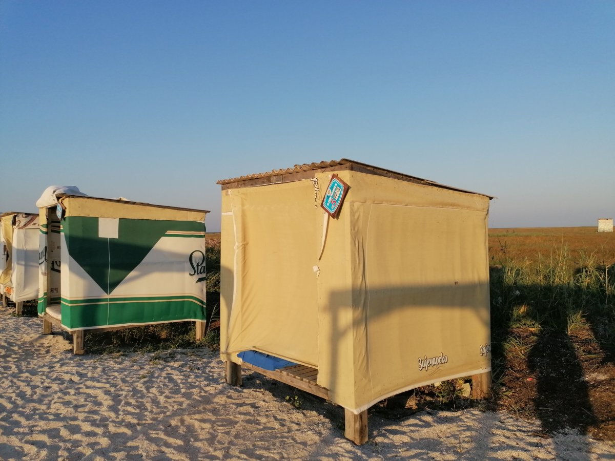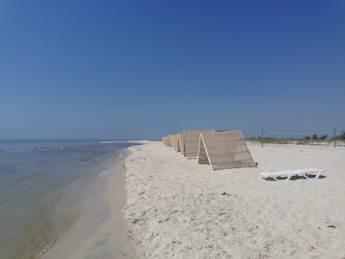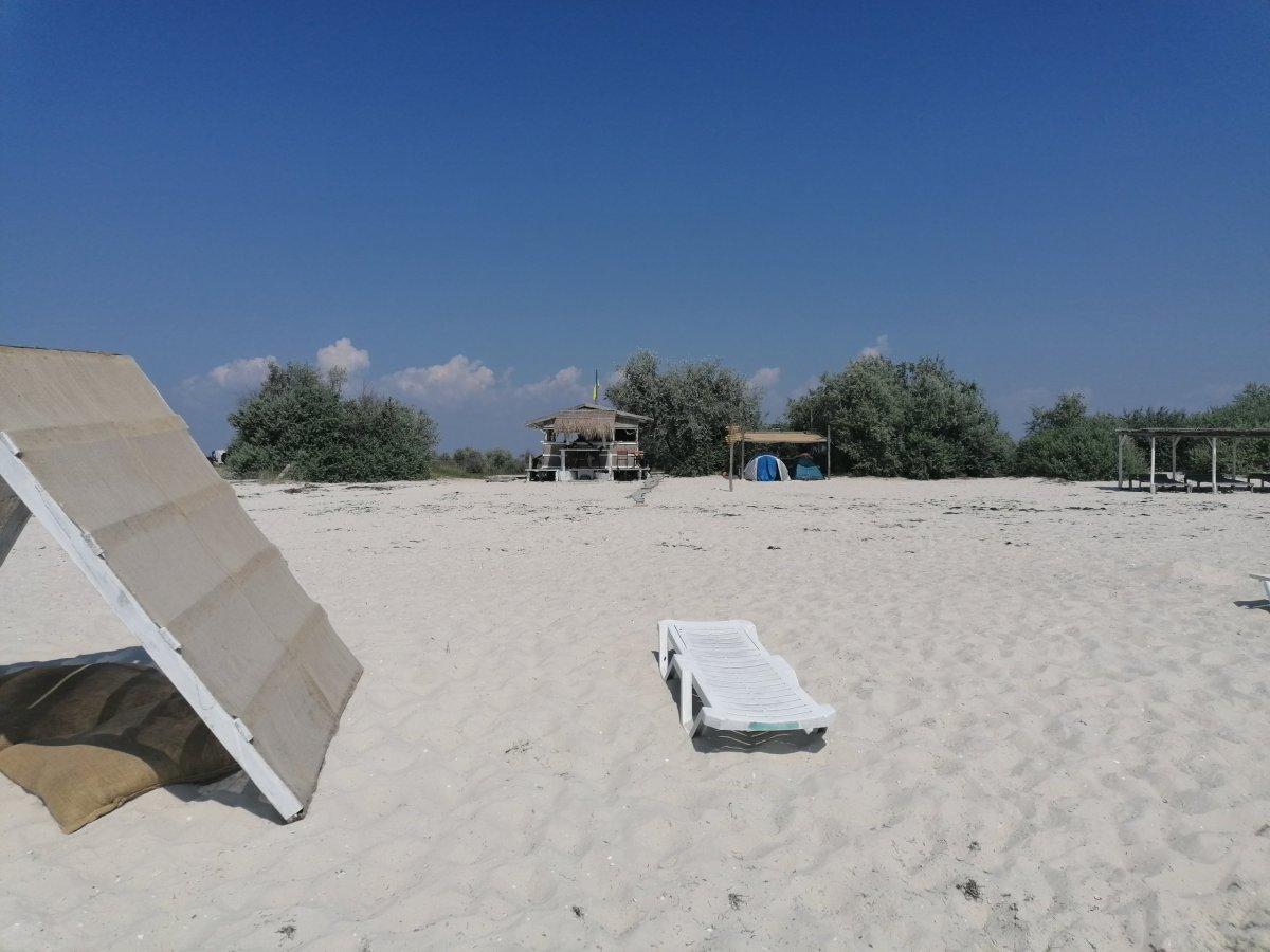 Na ostrově je hned několik možností přespání, jednak v tom eko kempu u Havrylovycha, kde jsme byli my (nemůžu se ubránit srovnání s našimi eko-bio-agro...turistickými základnami, se kterými to vlastně vůbec srovnat nejde 🤣), pak hned vedle u provozovatelů safari na ZILu (jen mi ty jejich dřevěné budky připadly spíš jako kurníky), pak kousek cestou na východ v Pirátské buchtě (kolem kteréžto cesty lidi normálně stanovali) a taky na jižní straně ostrova u baru se zřejmě dá v pohodě stanovat, no a v neposlední řadě na východním cípu u majáku je několik kempů - jeden z nich se jmenuje Dzha - hledejte na FB Yarky Travel. Google Maps ještě ukazují kemp Meduza tamtéž, pak jakýsi domeček opodál a ještě i na západní straně jakýsi Lager Rybaka. Na západním cípu, teda spíš kose, lidi běžně stanovali, akorát se tam museli s vybavením přebrodit, což není zas tak velký problém.