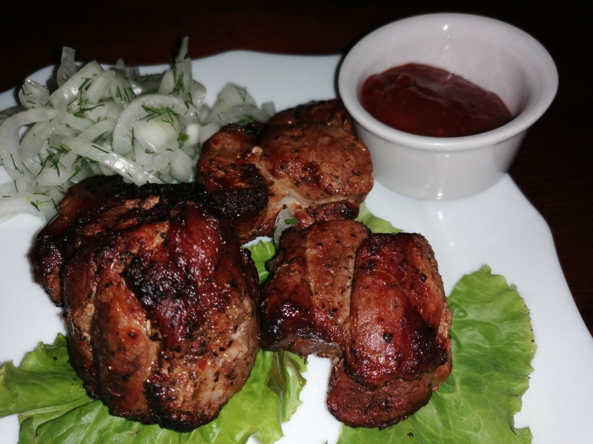 No, když jsme nedělní ráno 15.8.2021 viděli nabídku snídaně, ztráta oběda se nám nezdála bolestnou. Dostala jsem lísteček s několika naškrábanými jídly, nemít relativně perfektní znalost azbuky, asi se nenajíme. Tak jsme si tedy objednali a po drahné chvíli (více než půl hodiny) i dostali 2 volská oka s 2 mikroskopickými průhlednými plátky slaniny, na uhel sice nebyly, ale propečené byly až příliš. Čaj se počítal jako nápoj k snídani, nadstandard (káva) se připlácela za 20 uah. Čekání na snídani jsem využila k prohlídce prostor. Pravá část přiléhající k restauraci byla vzpomínkou na rané dětství v tatranské ozdravovně, tedy určena k společnému veselení se v stylu dovolené s andělem či jakým čertem, v příslušném stylu staré dobré sorely. Zašla jsem i k moři a pochopila jsem, proč má hotel tak skvělý bazén, který jsme tedy využili do poslední chvíle k check outu v 11 hodin. Na naši žádost jsme byli zbaveni fialových náramků hostů místní ozdravovny a vyrazili jsme do víru lázeňského města Skadovsk. Posvačili jsme v jídelně RedDragon (předražené, ale chuťově dobré) a pak jsme zavítali do restaurace Neptun. Objednali jsme si výborný skopový vývar s pořádnou porcí masa a talíř grilovaného včetně zeleniny. Prohlédli jsme si lidmi obležené pláže a zhodnotili, že stav mořské vody není nejlepší a společnost koupajícím dělají medúzy ve velkém množství.