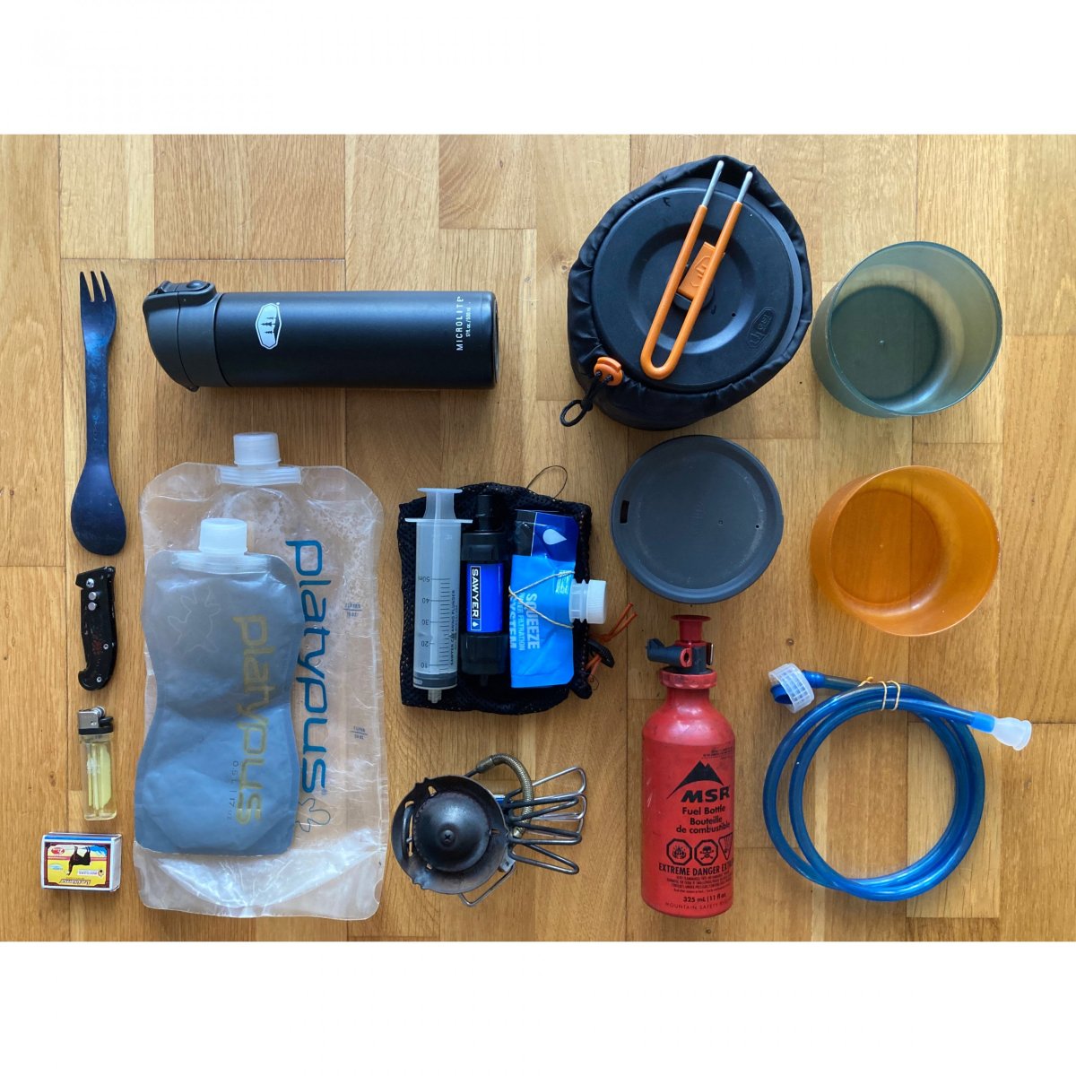 Termoska GSI Microlite 500 224 g - Nie je úplne nutnosť. Zima je vám primárne večer kedy sa už nechcete nalievať čajom a už vôbec nie kokovým. Na druhú stranu to bolo príjemne keď bolo cez deň hnusne a vy ste zrazu mali ready teplý čaj, ktorý ste si ráno pri raňajkách navarili. Na teplejšie treky ostávala v hostely.