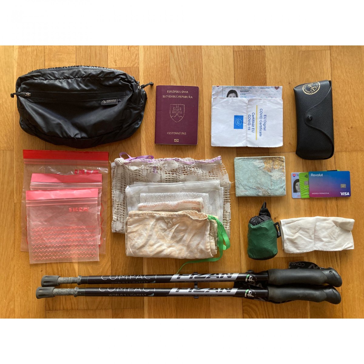 Ľadvinka 80 g - Ľadvinka odobratá z nejakého ultralight batohu z Kickstarteru. Používaná nonstop na mobil, peňaženku, čelovku, pas, kapesník… Alternatívne by mali stačiť vrecká na bedrovom popruhu, ale ľadvinku som často nosila len tak na prechádzky do mesta bez batohu.