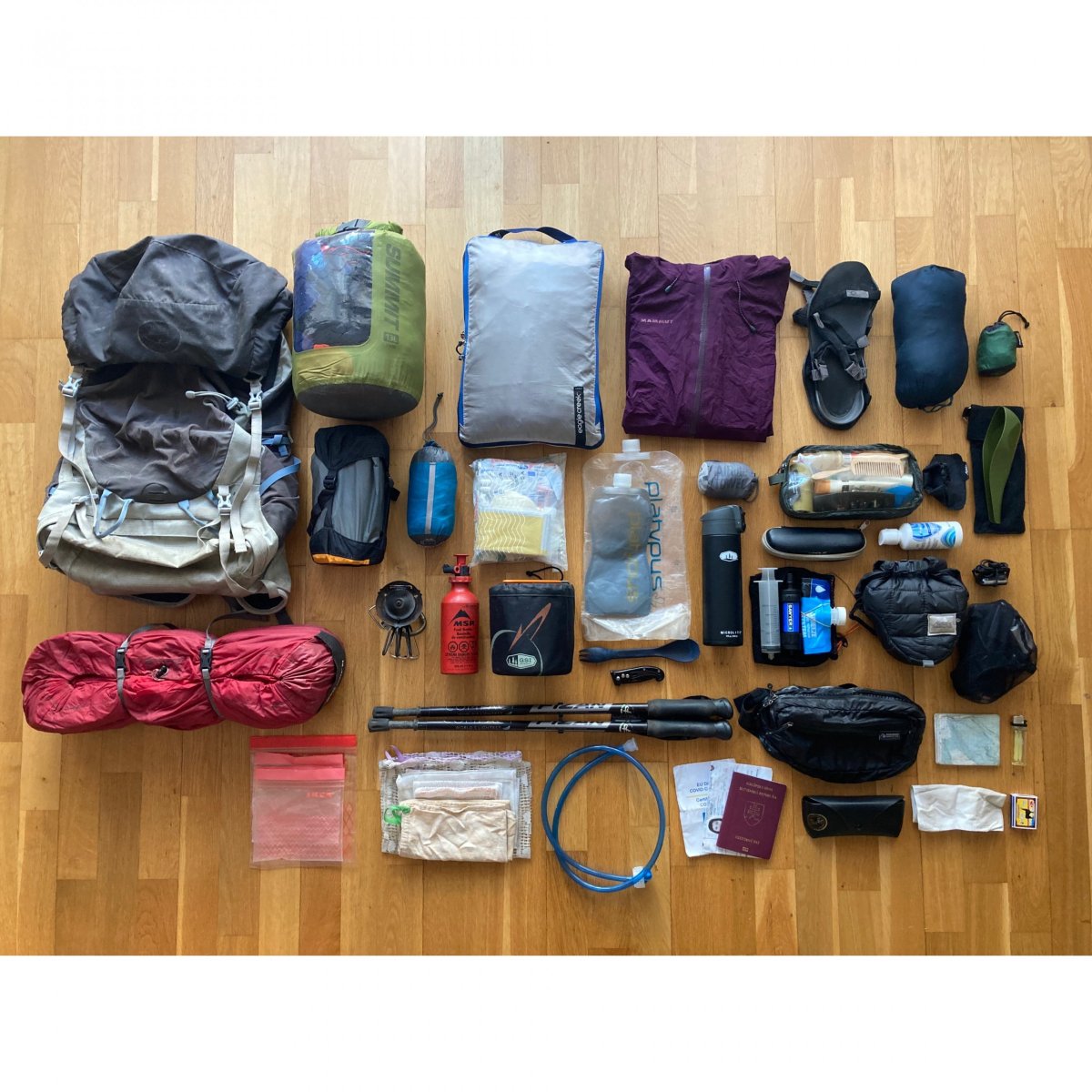 Batoh Osprey Tempest 40l 1,01 kg - Batoh, ktorý so mnou už precestoval kus sveta. Zmestí sa aj ako väčšia kabínová batožina do lietadla, pokiaľ nie je úplne narvaný. Má kopec vychytáviek, vreciek a spodný vstup. Kapacita 40l bola na 10 dňové treky so všetkým tým jedlom celkom hraničná, stan musel byť vonku a vnútri to bol solídny tetris. Pod tým nákladom už bolo celkom cítiť aj ramenné popruhy. Ak idete na kratší trek, alebo s častejšími možnosťami dokúpenia potravín, prípadne máte dehydrovanú stravu, alebo sa o výbavu delíte ešte s niekým, tak je tento batoh úplne dostačujúci a pohodlný. Opäť som si vedomá, že existujú aj ľahšie varianty, ale pokiaľ viem, tak iba bez chrbtového systému, čo si úplne neviem predstaviť. Takže zasa budem rada ak sa podelíte o vaše tipy.