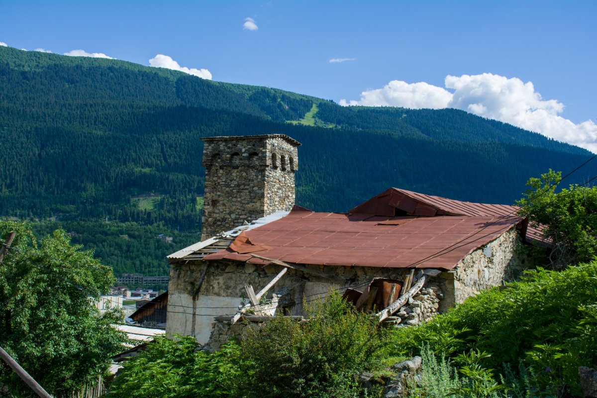 Čím dál jsme v horách, cesta je horší, šotoliny a čtyřkolek přibývá, ovšem stále i osobáky. Odpoledne přijíždíme do Mestie, takové ospalé podhorské městečko, čekal jsem davy, ale turistů je málo. Ubytujeme se v Mountain Star in Mestia, slušný penzion s vlastní koupelnou na pokoji a se snídaní. Chceme se podívat na obranné věže, které vidíme z pokoje, venku se ptáme výrostků kudy. Jeden nás vede do muzea, kterého je součástí dům s věží z desátého století, do které se dá po několika žebřících vylézt až nahoru. S průvodcem se domluvíme bez problému rusky, ostatně většina starších lidí rozumí rusky, mladí spíš anglicky a kupodivu velmi dobře německy. Věže v dřívější době sloužily na obranu před nájezdy Mongolů, Peršanů a Turků. Úplně nahoře schovali ikony o patro níž děti a ještě o patro níž ženy, chlapi zůstali dole a bojovali. Po exkurzi a výkladu zaplatíme 10 Lari za osobu. Jdeme se podívat na další věže, cesty končí už jsou to jen takové chodníky, plné kravských h...n, je třeba si dávat pozor. Spousta kamenných domů u kterých jsou věže je obydlená, někde jen dobytek, někde ani to ne, je to jako začátek minulého století u nás na Moravě a naráz na dvoře Mercedes. Všechno zpustlé, opravy typu: kus rezavého plechu, popřípadě igelitu na střechu, branka se přidrátuje a klackem podepře... Smutný a zároveň krásný pohled na kamenné historické stavby. Je večer, hlad nemáme, jedeme si do centra na kafe a jdeme spát.