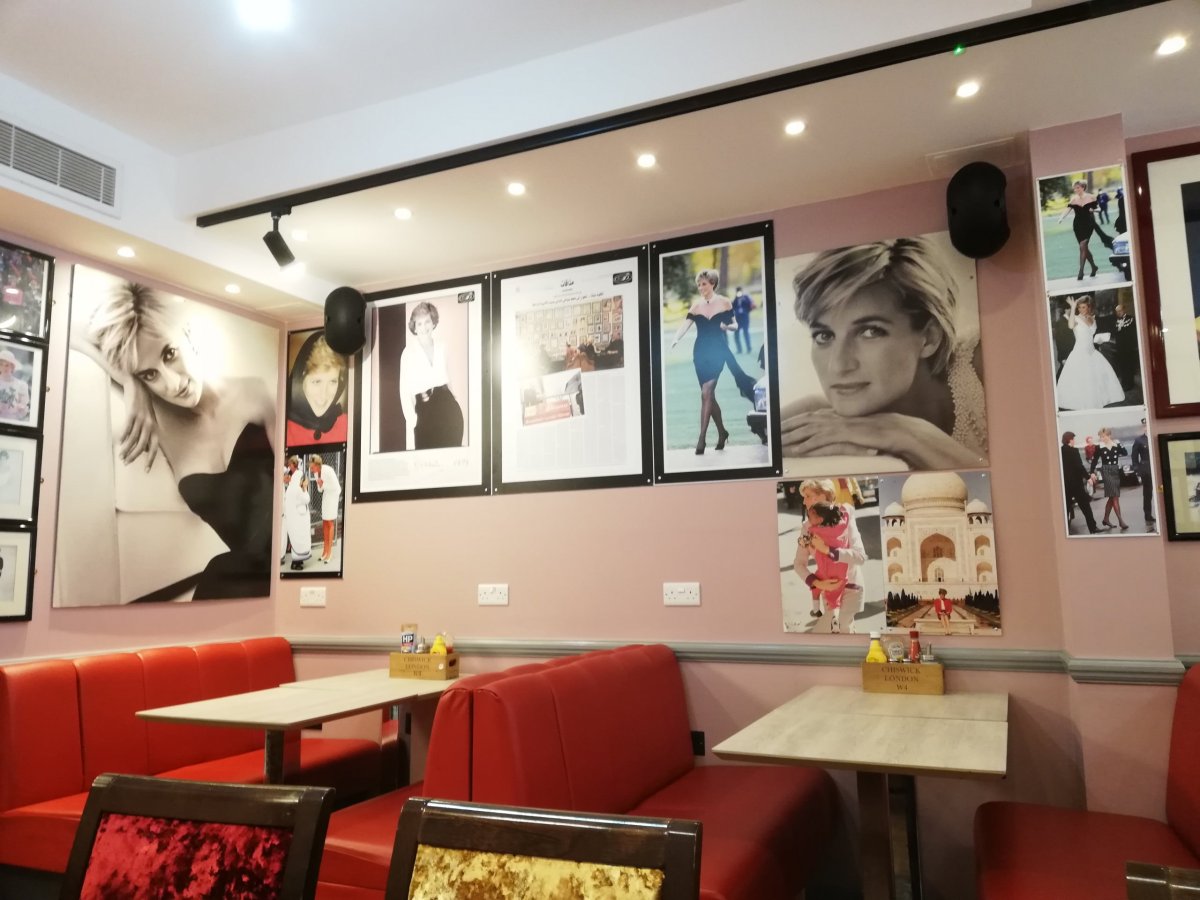 Ano, podnik je pojmenován po nejznámější londýnské Dianě, která prý bývala častou návštěvnicí. Aby taky ne, když to měla kousek z Kensingtonského paláce a tento podnik má do aristokratické salonu docela daleko. Přes cestu je česká ambasáda (a vedle ní ruská). Kavárna je poměrně malá a na stěnách vidí fotky, články a obrazy s Lady Di na nichž je například vyobrazena s iráckým majitelem Abdulem. Hold arabští muži pro ni měli slabost. Kdysi tu prý zavítal i princ Harry, tak třeba se dozvíme nějaké pikošky v jeho memoárech :)