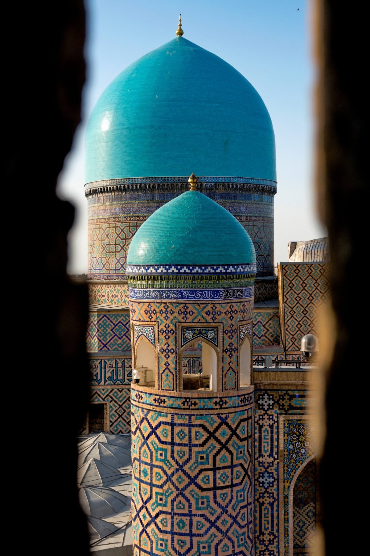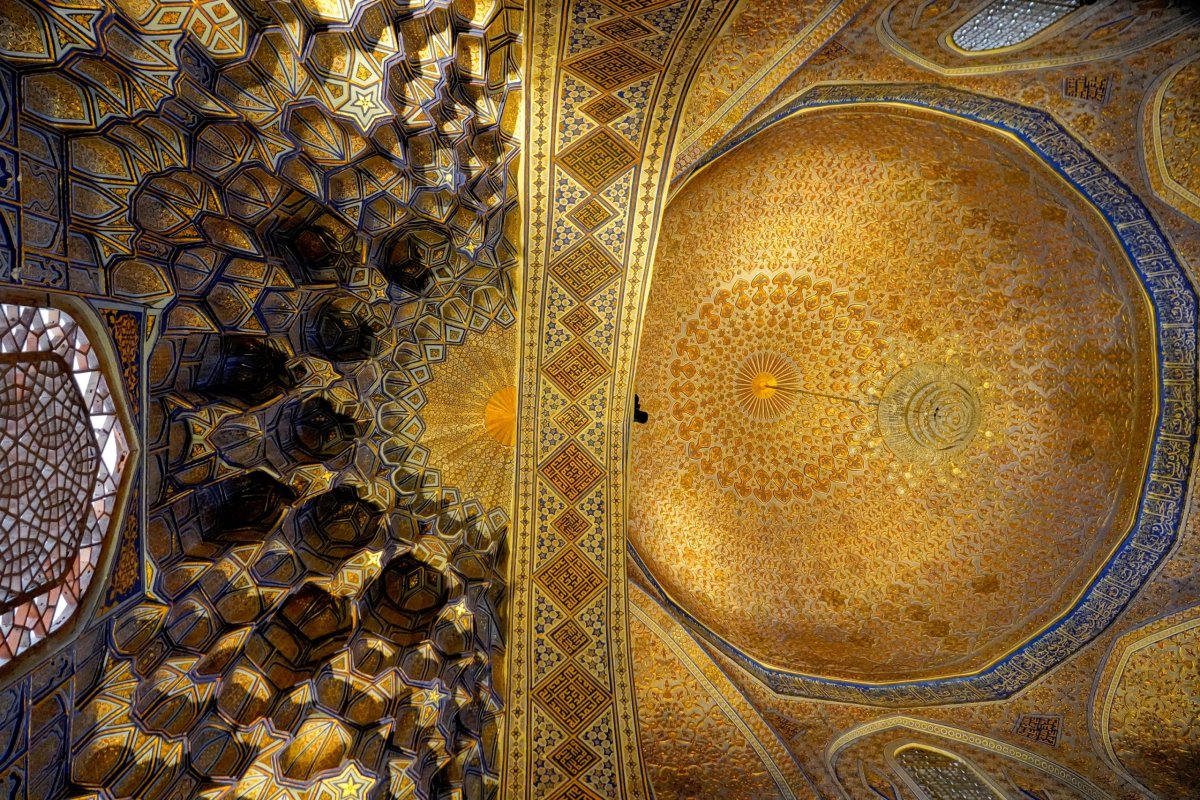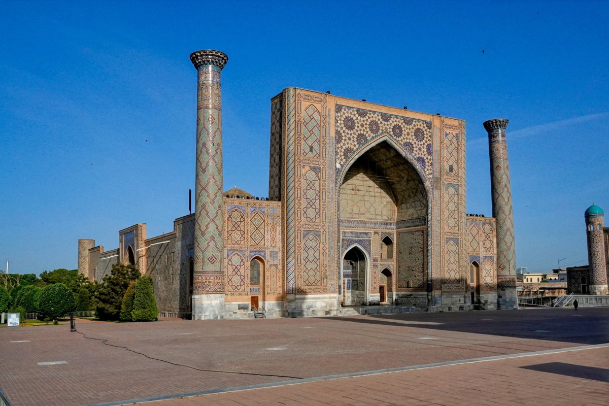 Ráno snídáme v turistické čajovně před mešitou Bibi-Khanym a seznamujeme se s místními dobrotami. Hlavně medovník je výborný. Poté trochu malátně dojdeme kolem Registánu do ubytka a dospáváme pár chybějících hodin. Odpoledne se vracíme na Registán. Je to pecka. Tři metresy proti sobě. Jedna hezčí než druhá. Vstupné je asi 160Kč a za podobný úplatek nás hlídač pouští na minaret. Vlastně tu celý večer obchází a nabízí turistům, kteří nepatří k velkým skupinám, že je pustí nahoru. To je vůbec příjemná vlastnost místních hlídačů, kterou oceňuji hned další den brzy ráno. Místo, aby mě do památky nepustili, protože je zavřená, prostě mi prodají oficiální lístek. Ten obvykle platí dva dny a není problém se vrátit znovu později.