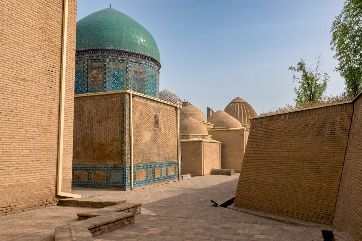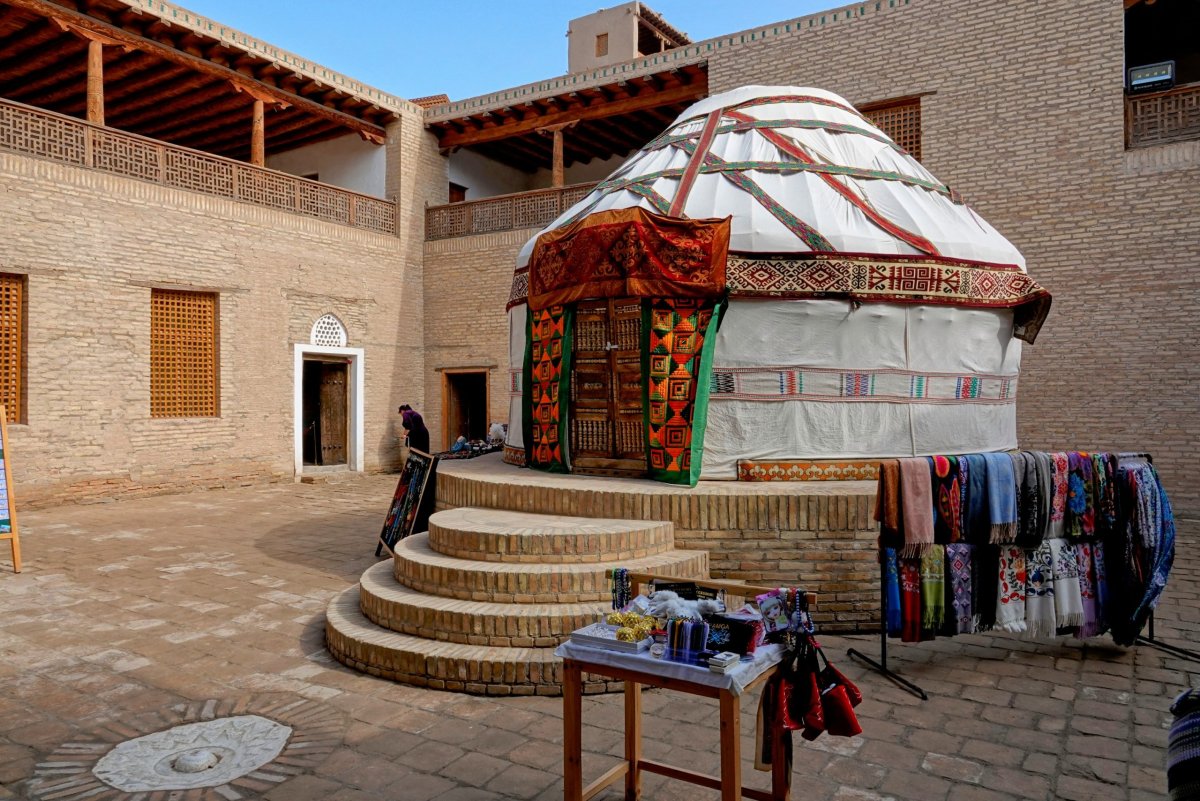 Dokončujeme prohlídku chybějících památek v rámci starého města. Dost se nám líbí palác Taš Šaulí a jeho zvláštní vnitřní nádvoří a další dvě s jurtou uprostřed. Palác panovníci stavili zřejmě pro prestiž a pro služebnictvo, sami údajně radši spali v jurtě na nádvoří.