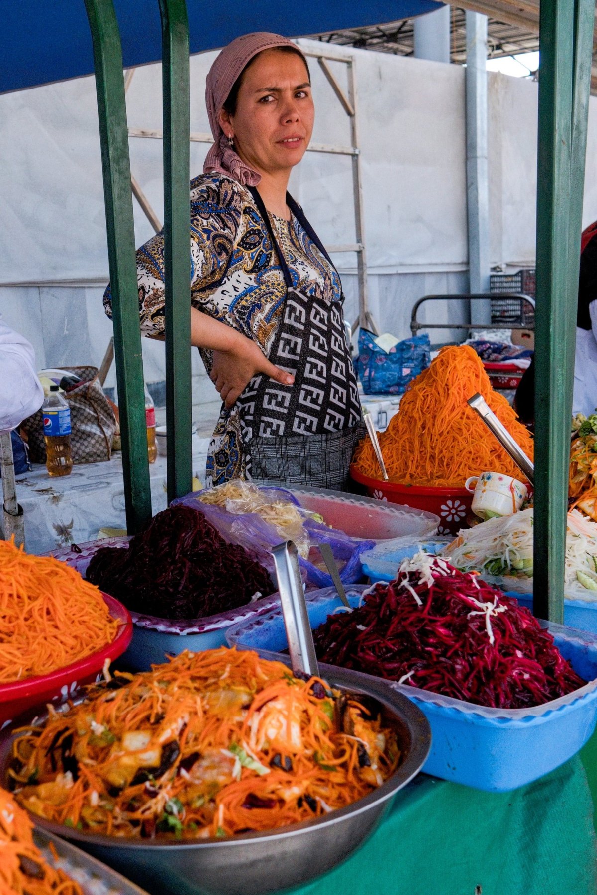 Příjezd do Taškentu je načas, s čímž jsem vůbec nepočítal. Snídáme na nádraží a pak razíme na prohlídku metra. To je tady asi nejlepší věc pro západního turistu ve městě. Stanice jsou podle moskevského vzoru stavěné jako paláce a každá je jiná. Jedem do Chorsu bazaru - největší středoasijské tržnice. Jsou to jatka, všude maso všeho druhu včetně koňského, sýry, mléko, máslo, ovoce, zelenina, košíky… cokoliv a je to obrovské opět monumentální.
