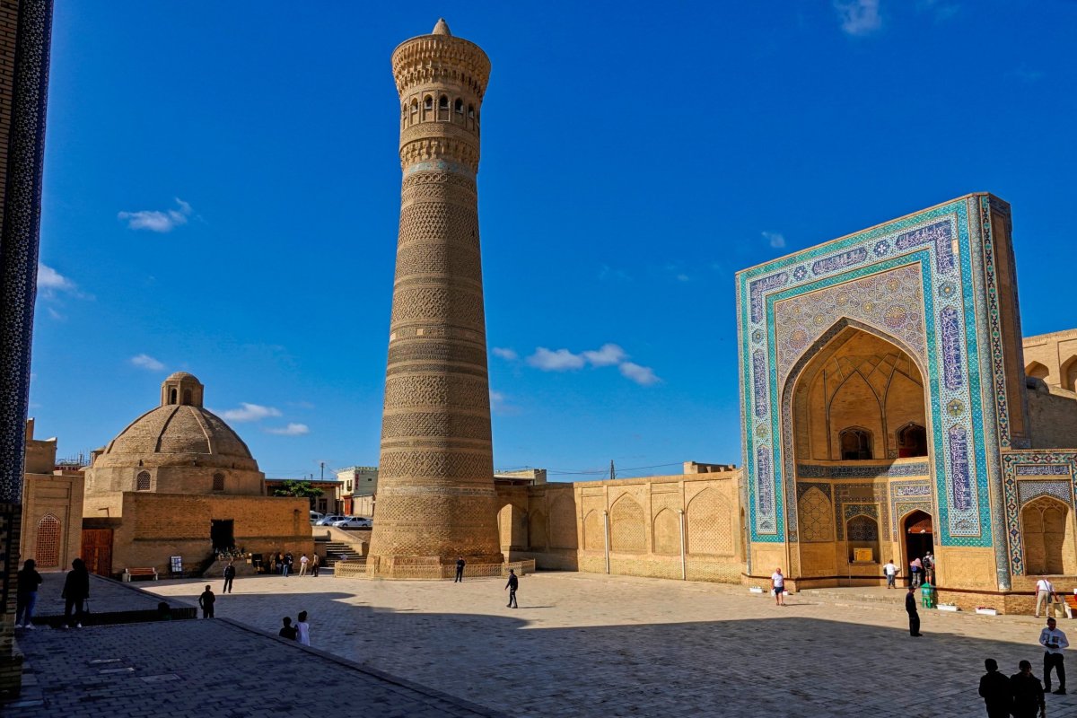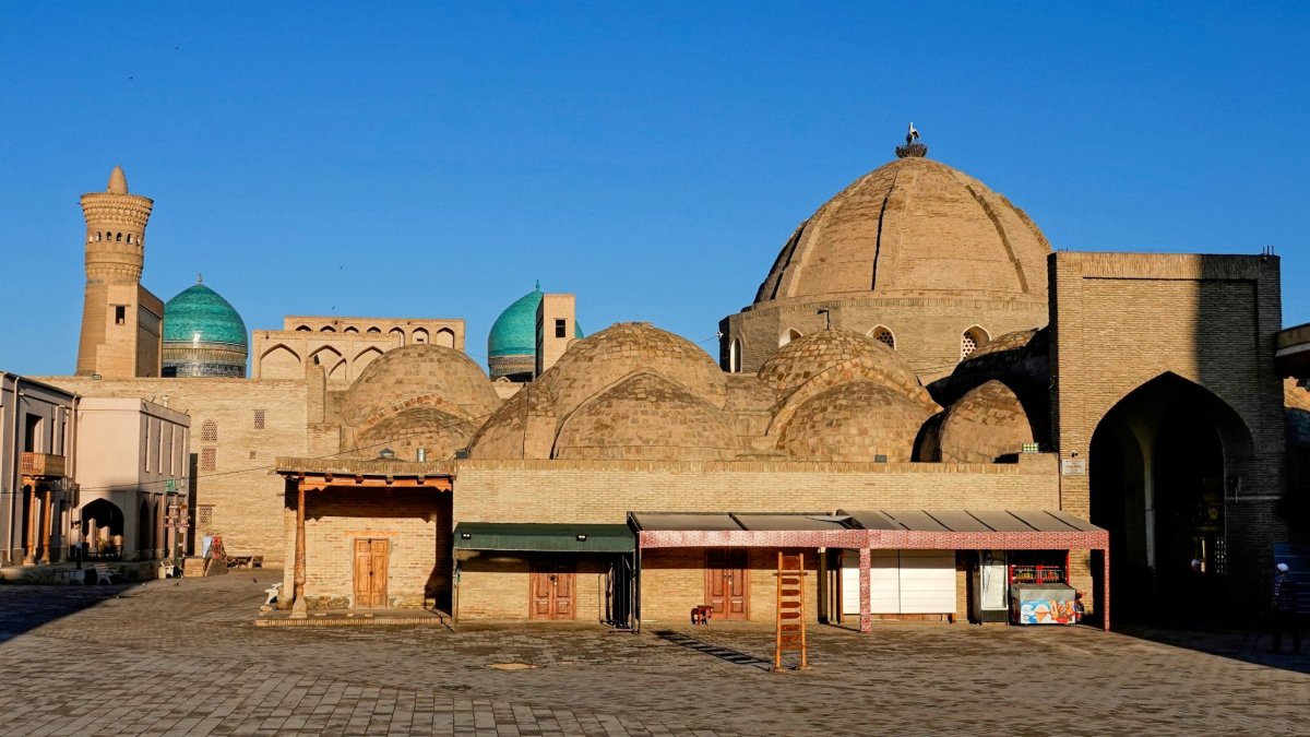 V podvečer přijíždíme do Buchary a šofér nám lámanou Ruštinou vysvětluje, že dnes je ve městě koncert a že je centrum pro auta zavřené. Ani ho nepodezírám, že si chce ušetřit námahu. Zaparkuje, bere naše batohy na záda a doprovází nás pěšky do hotelu. Já mu vysvětluji Esperantštinou (to je směs angličtiny, turečtiny, češtiny, ruštiny a nějakého neidentifikovatelného jazyka), že mohl dojet i mnohem blíž (mám totiž offline mapy.cz), ale on že ví co dělá a ať jdeme. A měl pravdu, procházíme celým starým městem od východu na západ a míjíme jedno nádherné náměstí za druhým, jeden bazar za druhým až přicházíme k velkému minaretu u kterého bydlíme. To vše je úžasně oživené malými koncerty folklórních tanců a zpěvů a tak náš upocený příchod je jeden z nejlepších „wow“ efektů celé cesty.