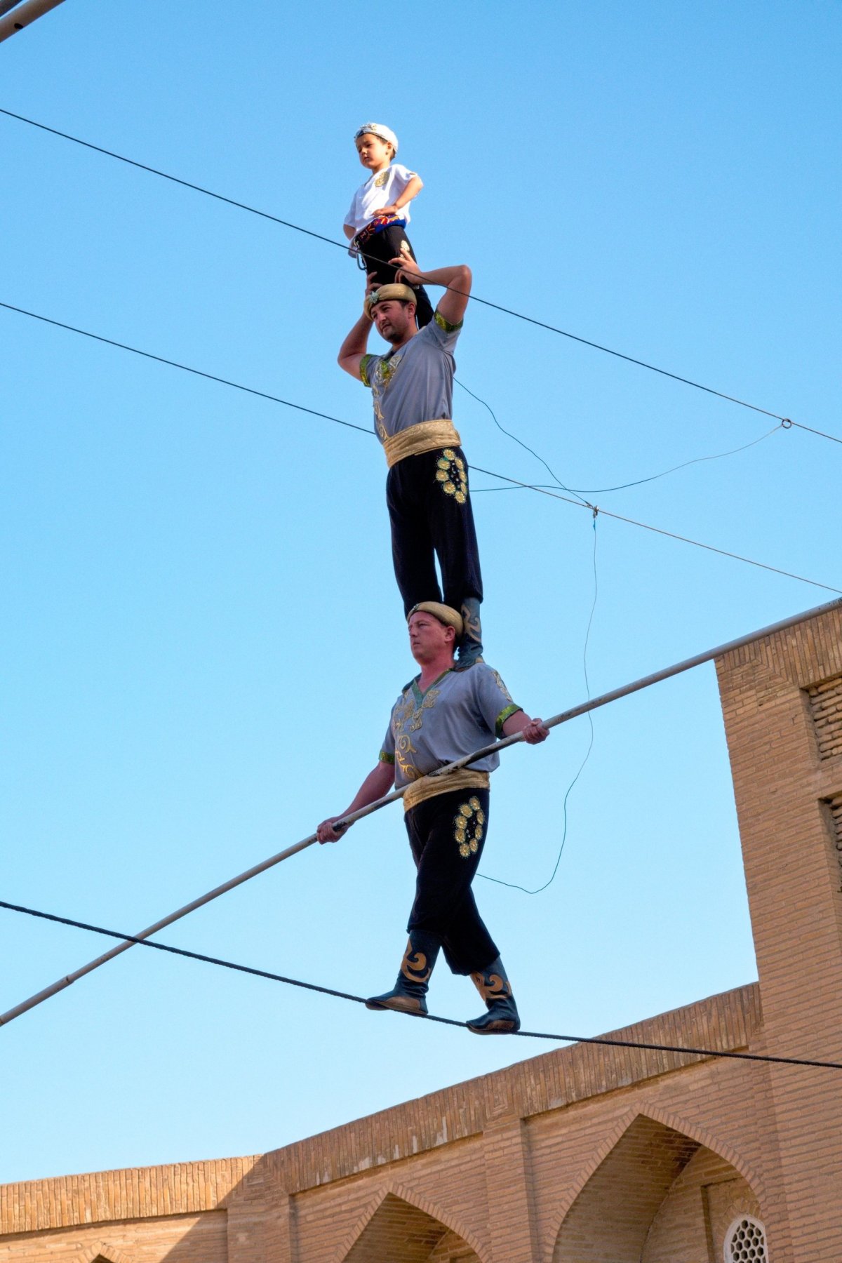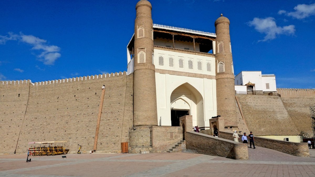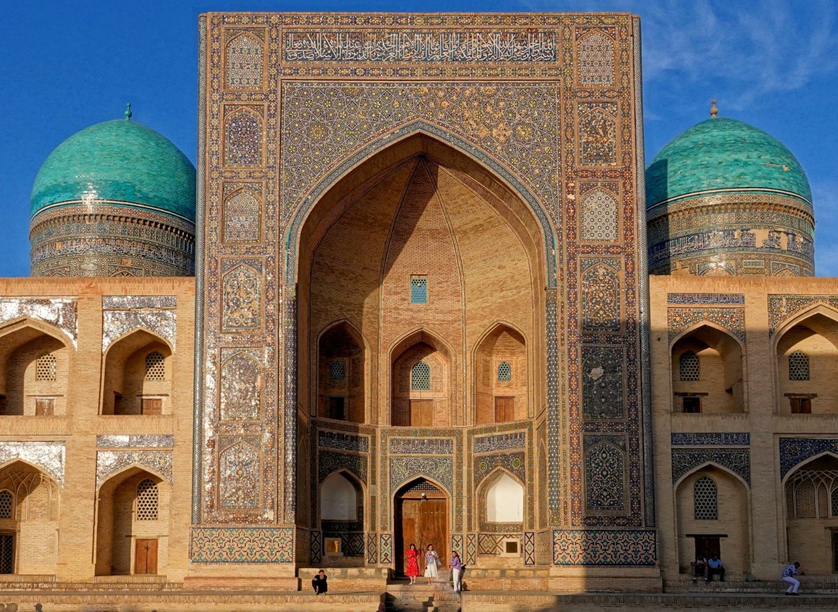 Dnešek bude zase plný památek, ale úplně to nepřeháníme, aby nám všechno v hlavách nesplynulo v jedem maglajz a opět to prokládáme čajovnami a medovníkem. Znovu je den plný koncertů a do centra nesmí auta, což je docela příjemné. Jenom ta rikša, kterou jedeme z jednoho konce města na druhý, musí centrum objíždět po přeplněném okruhu, což je dost bizardní. Odpoledne posedáváme v parku před mausoleem Samanid, což je jedna z mnoha nejstarších a nejhezčích staveb ve městě a Zuzka zkouší hrát volejbal s místními děvčaty.