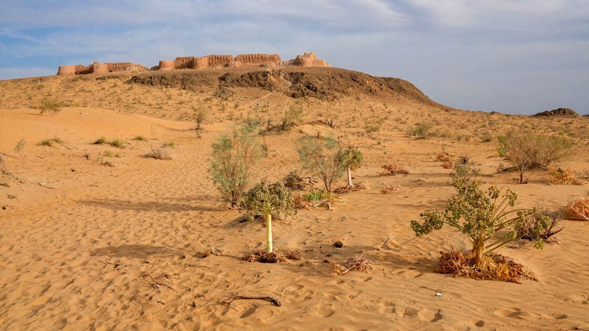 Objednal jsem dvoudenní full-servis výlet do pouště se spaním v jurtách. Řidič mi včera potvrdil program zprávou “no worries” a ráno se objevil v našem hotelu. Anglicky nemluví, ale má slovník v mobilu, takže o vtipné momenty není nouze. Jedeme sami dodávkou pro 12osob. Cesta je dlouhá, dvě hodiny úrodná krajina podél řeky. Traktory jsou na polích vzácnost, častěji vidíme motyky. Za městem Navoy odbočujeme na sever a za chvilku jsme v pustině.
