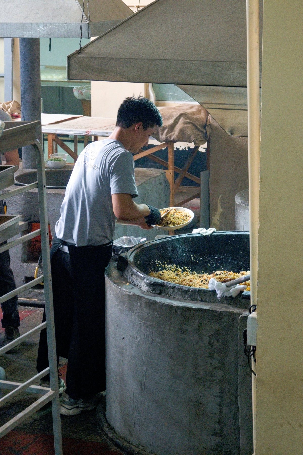 Poslední výzvou v Taškentu je najít pilav centrum, to je prý místní vyhlášená jídelna s pilavem. Ale zapomněl jsem si na mapě najít, kde to ve městě je. Zkouším štěstí u ostrahy v metru. Mladík chvíli dumá a odkazuje nás na stanici Bodomzor na druhé straně města. Tím určitě nemůžeme nic zkazit a jedeme tam. Na místě se ptáme dvojice náhodných mladíků. Ti tvrdí, že místo je legenda a nikdo ho nikdy neviděl. Prodavač v trafice si myslí něco jiného, nedokáže nám ale vysvětlit cestu a volá taxíka. Prý za 16Kč nás tam doveze. A taky že dovezl, byly to necelé dva kilometry a stálo to 14Kč. Jídelnu jsme našli. Plná místních lidí a jídlo výborné. A průběh této poslední bojovky tak nějak vystihuje veškerou pohodu v této zemi. Zítra ráno nás čeká návrat.