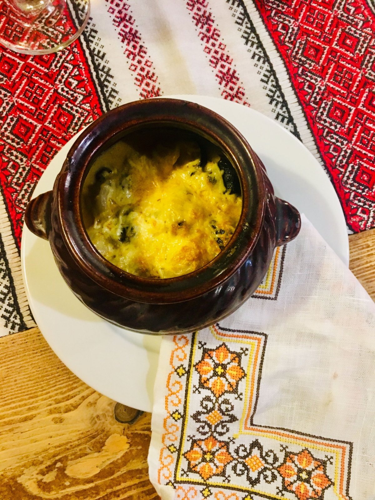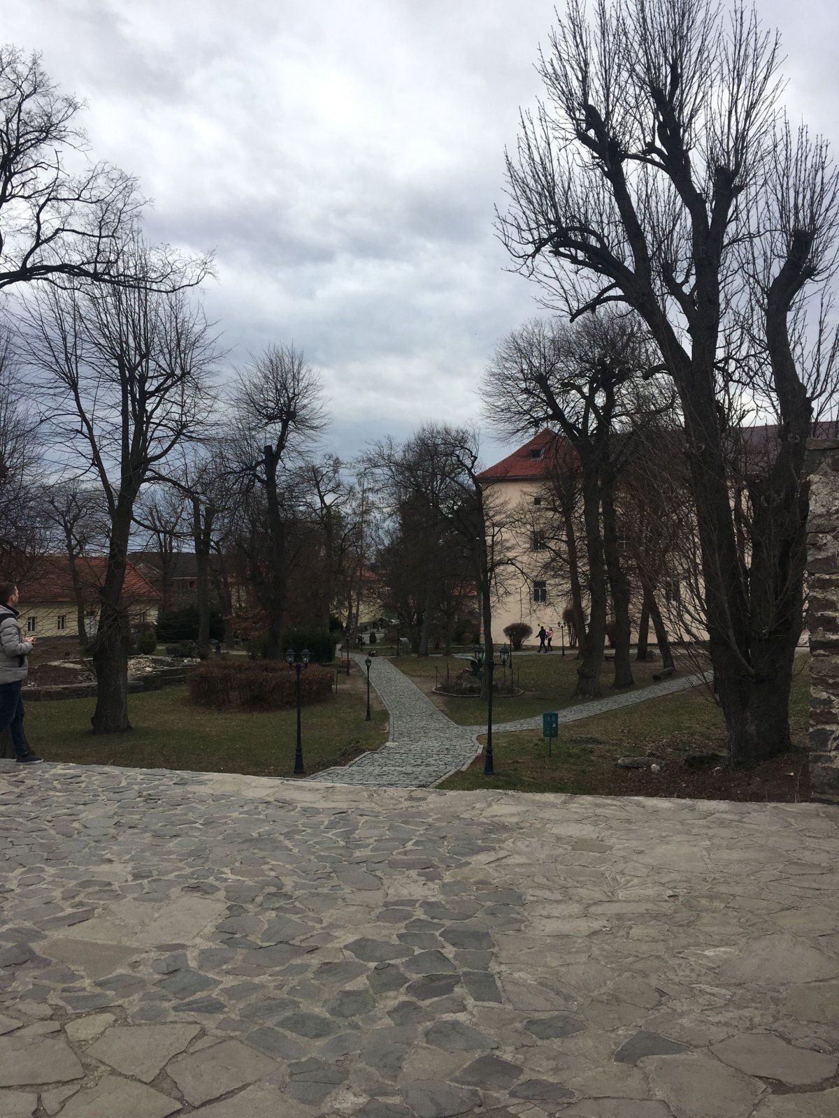 Druhý den ráno jsme šly na závěrečný nákup. Vodka byla dobrá, tak se musí vzít i domů, no ne? Taky jsem přibrala víno (Villa Krim muškát) a bylo opravdu výborné. A to jsem upřímně moc nečekala od vína, které se pěstuje na Ukrajině. A taky nějaké ty sladkosti na rozdání. Pro ty, kteří mají rádi suvenýry co vydrží déle než jídlo, doporučuji oblast kolem hradu. Zde můžete koupit různé upomínkové předměty jako jsou magnetky a další drobnosti. Po nákupu jsme se šly sbalit a vyklidit byt. Nevím, proč nás nenapadlo nechat kufry v úschově na nádraží. Vzaly jsme je do města sebou, což nejdřív bylo trochu otravné, ale po tom, co se počasí v průběhu pár minut změnilo ze skoro letního na typicky zimní, jsem byla ráda, že ho mám a že si můžu vytáhnout bundu. Pro oběd jsme vybraly Vertep. Příjemná a tradiční ukrajinská restaurace. Já si dala pelmeně zapečené s houbovou omáčkou a sýrem a byly opravdu výborné. Výběr jídel dostačující a ceny nízké. Po obědě jsme ještě zavítaly k muzeu Ivana Olbrachta, kde můžeme na stěně starého obchůdku najít pár českých slovíček. Odtud už to byl jen kousek do naší oblíbené cukrárny, kde jsme poseděly, než byl čas vyrazit na nádraží. Ještě dobrá rada na závěr. Pokud sedíte na vlakovém nádraží, máte v peněžence poslední 4 hřivny a potřebujete si dojít na toaletu, opravdu si na ní zajděte. Když si řeknete, že si zajdete až na autobusáku, že to přece bude stát stejně, tak děláte chybu. Na autobusovém nádraží stojí toaleta 5 hřiven. Tak ať se nemusíte vracet jako my.