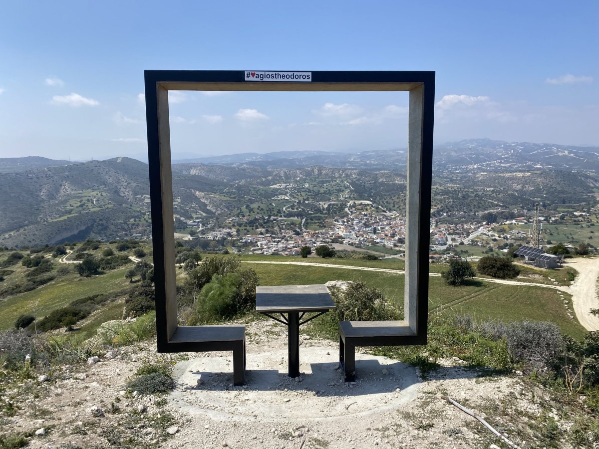 Z Limassolu míříme zpět do naší vesničky a vydáváme se na "túru" na vyhlídku Frame. Od našeho ubytování necelé 2 km ale v tom teple mi to přišlo jak 10.. Nahoru se dá sice vyjet autem ale asi od poloviny je cesta neupravená, rozbitá a s nízkým podvozkem bych to moc neriskovala. :-) Výšlap byl sice nekonečný ale stál za to! Výhled na celou vesničku a okolní přírodu byl k nezaplacení!
