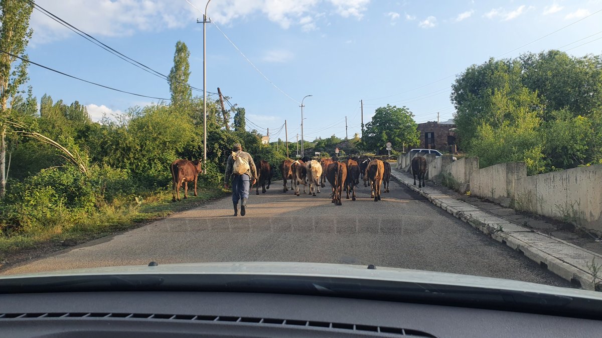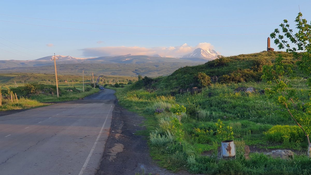 15.6. vstáváme ještě za tmy ve 3:50 ráno. Oblékám si pro jistotu to nejteplejší, co s sebou mám: legíny, tenkou mikinu, větrovku z Lidlu, tenisky, nesmí chybět kšiltovka a sluneční brýle. Rukavice, čepici nebo šálu jsme s sebou nebrali, je přece červen. Jak Bagrat slíbil, tak udělal, ve 4:00 nám předává velkou tašku se snídaní, prý překvapení :) Tentokrát odmítáme ranní dávku arménského koňaku a vyjíždíme půjčeným autem k hoře, protože: „Čím dřív ráno vyrazíte, tím lépe, protože kolem poledního se nebe zatahuje a začíná nepříjemně foukat“. V autě začnu snídani rozbalovat, jsem zvědavá... a je tam placka. Ale obrovská! Správně tedy tradiční arménský chléb lavaš (který je dokonce v UNESCO :) ). A k tomu mazací sýr, pár koleček mastného salámu a plastový nůž. No blbější snídani nám do auta ani dát nemohl :) Tak to trhám, mažu, drobím, nůž od sýra padá na zem, nadávám, jsem upatlaná a mastná, nemůžu se ani kochat krajinou, nakonec to vše balím do ruliček, krmím Lukyho i sebe a utírám se do legín. Dnešní první nástrahu v podobě snídaně jsme zvládli! :)