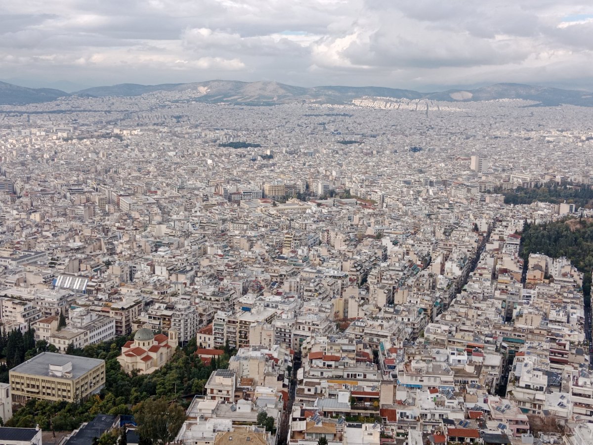 Po prohlídce stadionu jsem se vydal autobusem pod horu Lykavittos, která je nejvyšším bodem Athén. Na vrcholu hory je kostel svatého Jiří a rozhledna, odkud je úchvatný výhled na celé město a okolí. Na horu se dá dostat pěšky, autem nebo lanovkou, ta stojí 10 eur za zpáteční jízdenku. Já jsem si vybral lanovku, je rychlá a pohodlná.
