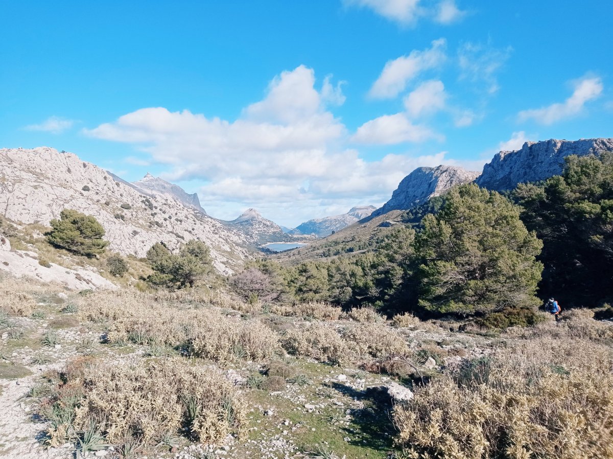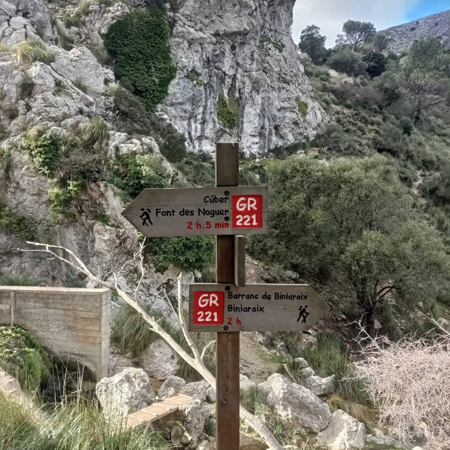 2. den (13km) - Překvapilo nás, že se rozednívá celkem pozdě (7:30 - 8:00), takže se připravte, že v prosinci budete mít na spánek každý den přibližně 11 hodin, pokud tedy nechcete chodit za tmy. Po snídani jsme vyrazili na parkviště Coll de sa Gramola, abychom se napojili na GR221. Tento den nás čekal poměrně náročný výstup na Caseta de la Mola (míjeli jsme po cestě Fica ses Fontanells, kde je možné se ubytovat), cesta je po celou dobu značená mohylami z kamenů, jiné značky tam nehledejte. Na dřevěné rozcestníky narazíte až při sestupu. Cestou jsme prošli kolem turistického přístřešku Coma d'en Vidal, který byl zavřený. Rovnou musím smutně poznamenat, že vlastně všechny TP, které jsme cestou potkali, byly zavřené - jednoduše zde nebyli žádní turisti. Přenocovat jsme se rozhodli u dalšího turistického zázemí Boal de ses serveres.