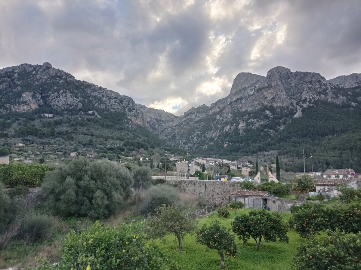 9. den (3km) - Cíl tohoto dne byl jasný - Bunyola. Předešlý den předpověď hlásila déšť od 9 hodin. Tak jsme ráno vstali za tmy, sbalili obytné spacáky, posnídali a vyrazili. Tak tak jsme došli do Orientu a začal foukat nárazový vítr, při kterém jsme měli problém uržet stabilitu. Našli jsme útočiště pod střechou, počkali až přestane pršet a pokračovali jsme po cestě směr Bunyola - za 10 minut jsme se vrátili zprátky pod středu, počasí nám nepřálo. Byla tam autobusová zastávka, než jsme se stačili zorientovat v jejich aplikaci s odjezdy - jako na zavolání zastavilo auto a v něm sedět mladík, který pracovat pro organizaci, která spravuje cestu RG221. Řekl nám, že autobus tady jezdí jenom o víkendu a odvezl nás do Alara na vlak, cestou nám pověděl o své práci a nějaké zajímavosti, taky se nás zeptal na cestu, zda bylo vše v pořádku a co bychom zlepšili... fajn pokec, moc jsm mu poděkovali a pokračovali. Cesta vlakem byla příjemná, hlavně pohled na pohoří Serra de Tramuntana, které nás provázelo celý týden, jsme proletěli za 20 minut. Kolem poledne jsme se ubytovali v Residecia Mayol, prošli jsme Palmu, dali jsme si Paellu a víno. Ráno směr ČR!