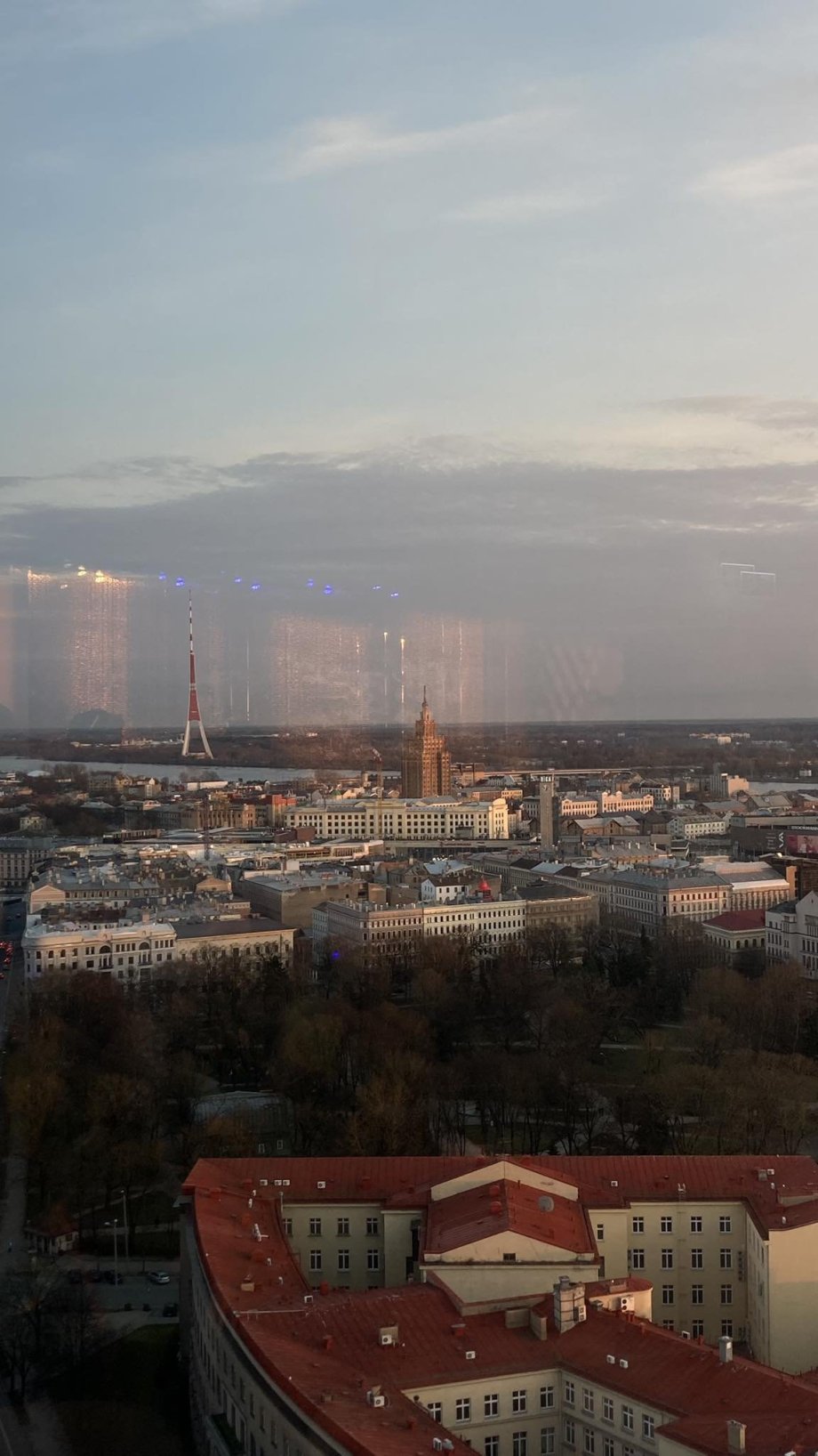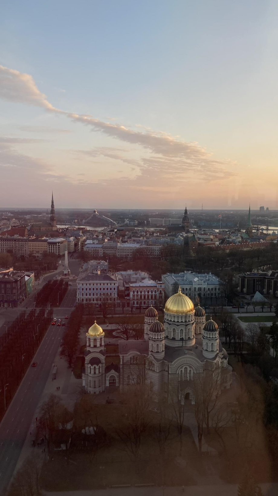 Jídlem jsme však večer oslavy mamčinných 50. narozenin teprve započali. Hlavní hřeb následoval po krátké procházce k hotelu Radisson Blu na rohu ulic Elizabetes iela a Brivibas iela. Ve 26. patře tohoto hotelu se nachází luxusní věhlasný rižský Skyline bar, z něhož je krásný výhled na město a zejména na Chrám Kristova narození. Načasování nám vyšlo parádně a my jsme tak dostávali první drink v době, kdy slunce akorát pomalu zapadalo a zajímavě barvilo město do oranžova. A pokud by se vám podařilo chytit místo hned u okna, budete mít jeden z nejlepších výhledů, které Riga může nabídnout. Nabídka drinků je zde velmi pestrá, v části z nich se vyskytuje i již zmiňovaný Black Balsam, ale nechybí ani další zajímavé alkoholy z různých koutů světa, exotické ovoce, jogurt, vanilka, javorový sirup, slaný karamel a spoustu dalších ingrediencí. Každý jsme si nakonec dali dva drinky, zaplatili přes 75 eur a vydali se okolo desáté hodiny noční Rigou zpět na ubytování.