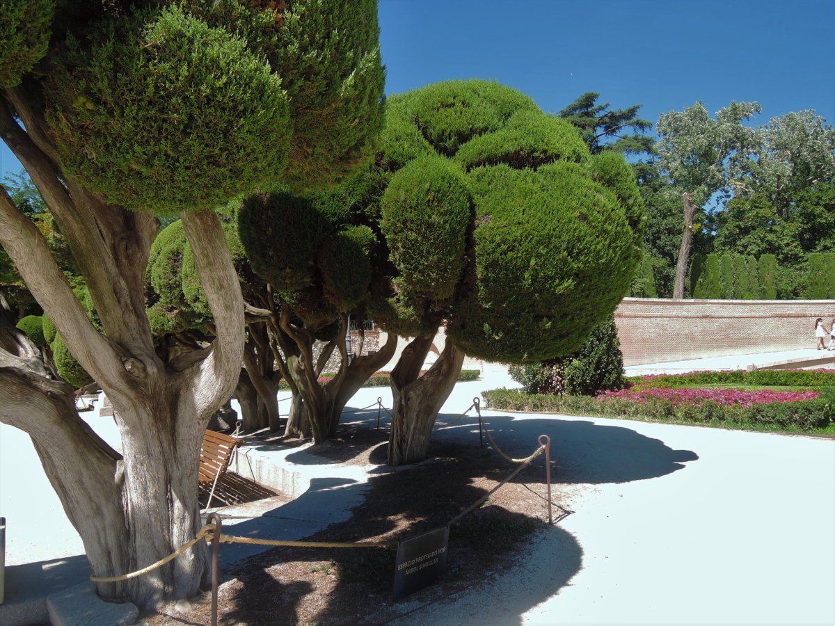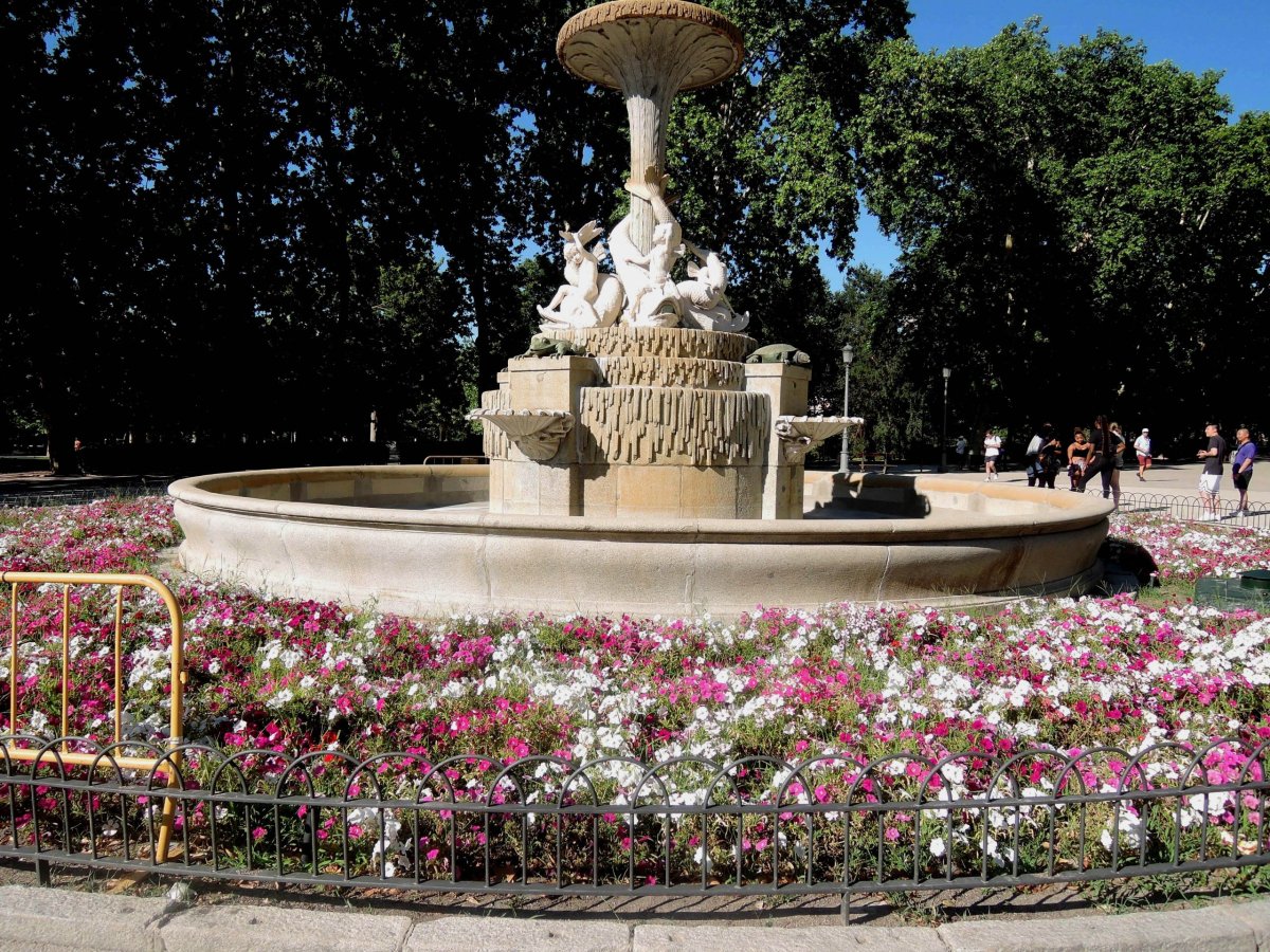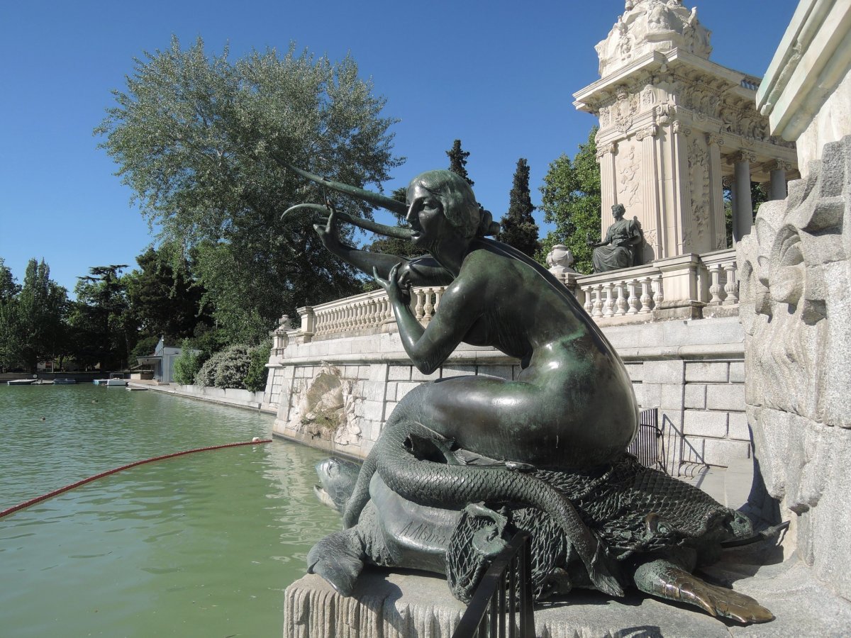 Nejvhodnějším místem trávení po takové hostině se naskýtá blízký park za galerií Prado (Parque del Retiro). Hnedle za branou pohladí oko úhledný francouzský parčík. Stezkami všelijak kroucenými dojdu na hlavní třídu u vodní nádrže. Z druhého břehu ke mně doléhají ryčné andělské zpěvy. Stanu před Křišťálovým palácem (Palacio de Cristal) a na pozdrav mi kynou žalvy, vystrkující hlavy z přilehlého rybníku. Druží se tam pospolu s ptactvem vodním. Obejdu kolkolem půvabný neoklasicistní palác (Palacio de Velázques) a u jezera pozdravím Alfonse XII., tyčícího se v centru kolonády.