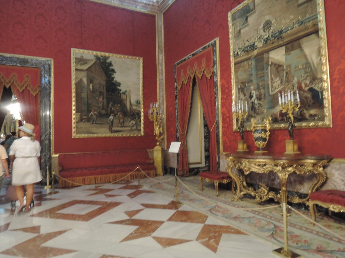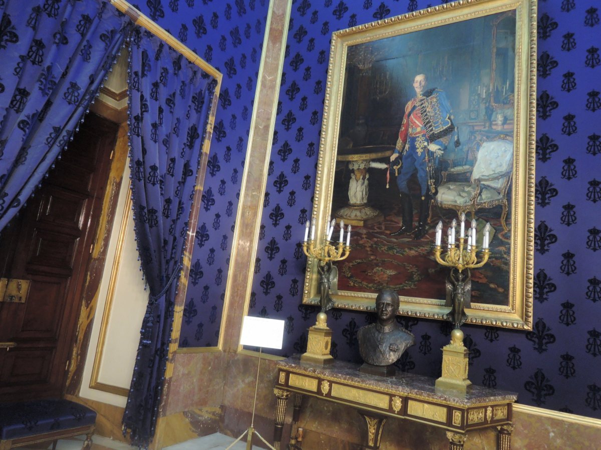 Po opékání v dlouhé frontě konečně procházím královským palácem, kde na turisty každou chvíli z nějakého koutu zakřičí no pictures! V královské kapli mě policajtka málem vykáže ven za jednu fotku. Šikana v každém rohu. Přejmenovala jsem jej na Palác No Pictures a u východu říkám od plic na mne shlížejícímu královskému páru, co si o tom myslím. Z obrázku ale není zcela zřejmé, co si o tom myslí jejich veličenstva.