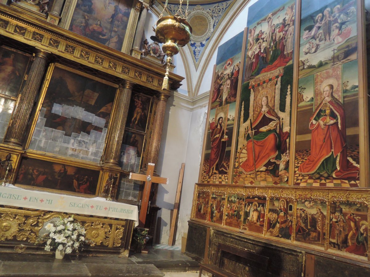 Když už bloudím v těchto končinách, vezmu to přes Míšu Navarrejského ze 14. století (Iglesia de San Miguel de los Navarros), slibujícího mudéjarskou výzdobu. Zavřeno. S mapou v ruce otáčím se jak korouhvička a můj orientační nesmysl hledá směr hotelu. Náhle se dveře rozletí a hudba z Taizé mne zve ku vstupu. Prostý vzhled s hodnotnými dřevěnými oltáři a ikonami. Hlavní oltář hraje prim, nádherná řezbářská práce. Chvíli posedím a broukám si spolu s reproduktorem známé melodie.