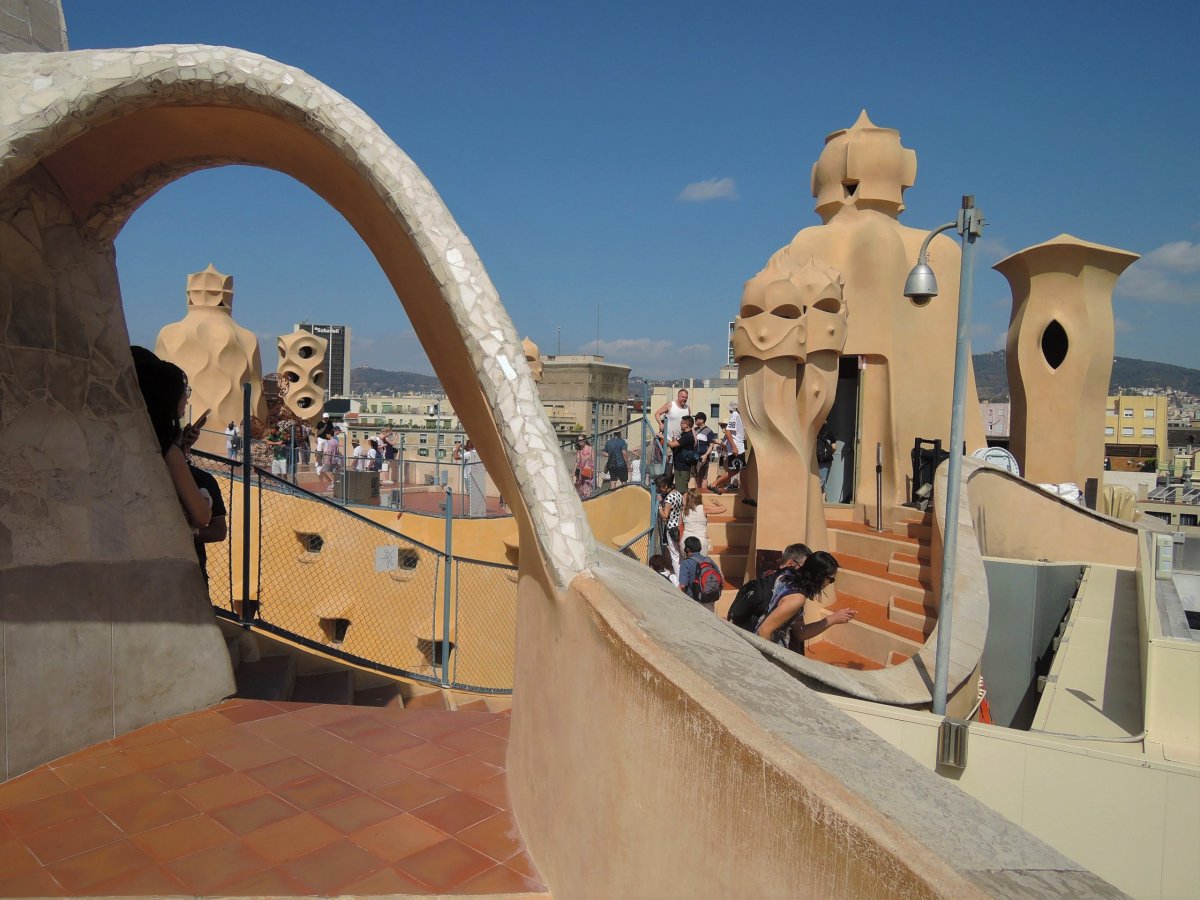 Davy ve Zlatém Čtverci (čtvrť Quadrant d’Or) u Gaudího domů za nehorázné vstupné. Musím obejít několik bloků, nežli se rozhodnu pro vstup. Uvnitř tlačenice. Nervy vypění na střeše Casa Batlló obložené nábytkem a konzumenty zakrývajícími architektonické prvky. Výbuch hněvu dopadne na hlavu chuděry barmanky. Na tuto bláznivou architekturu jsem se hodně těšila. O to bylo větší zklamání.