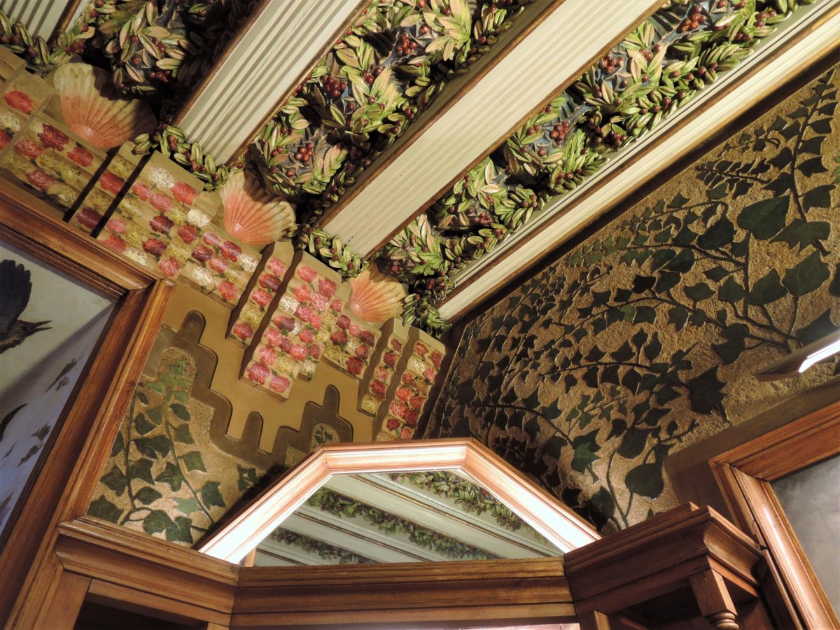 Ukonejším se u Vincenta (Casa Vicens) s klidnou atmosférou mimo hlavní trasy. Zkoumám detaily kachliček malovaných olejovkami, obdivuji mosaiku pod nohama a srdce zaplesá v kuřáckém salonku orientálního stylu. Sáhnu si na šikovné štukované zdi a nevěřícně kroutím hlavou nad polychromovanými stropními deskami z papíru! Doslova si sednu na zadek z miniaturního obývacího pokoje. Vincent je benjamínek, ale jak se povedl!
