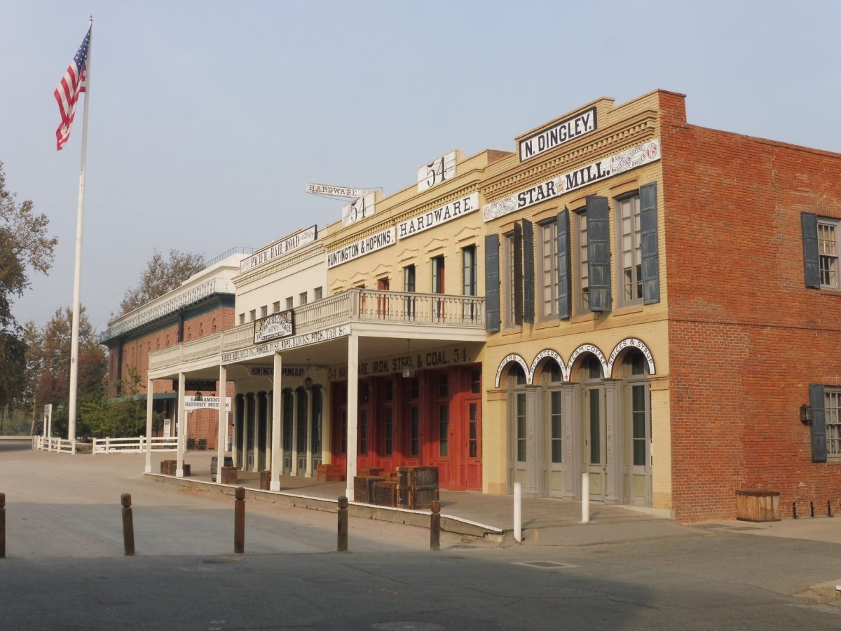 Nějaká dochovaná americká historie je zde samozřejmě také. Na řece můžeme spatřit pravý kolesový parník. U řeky pak takový malý skanzen jako vystřižený z westernu (The Old Sacramento Historic District), na kolejích stojí stará dobrá parní lokomotiva. Hned vedle najdeme muzeum železnice (California State Railroad Museum).