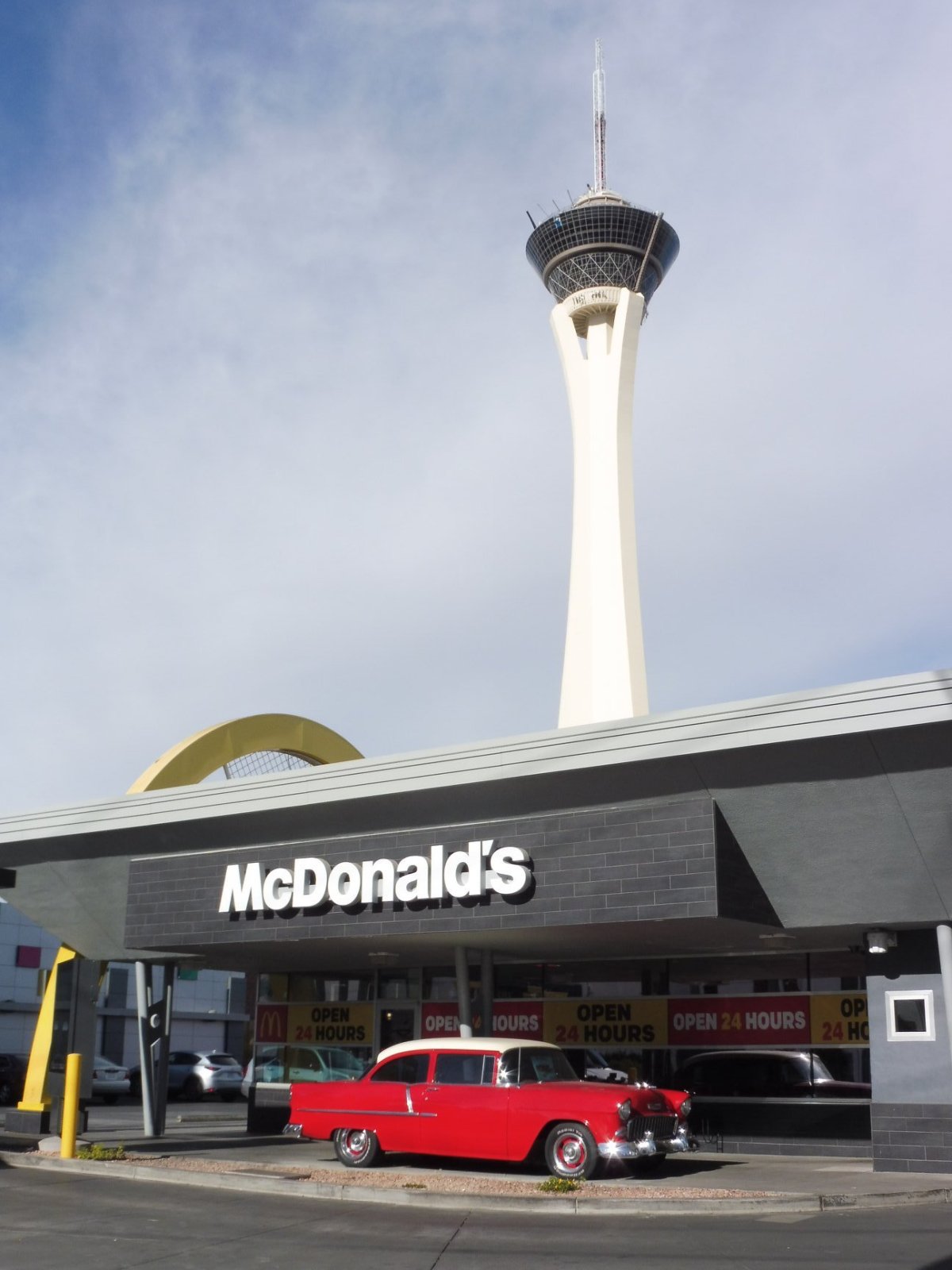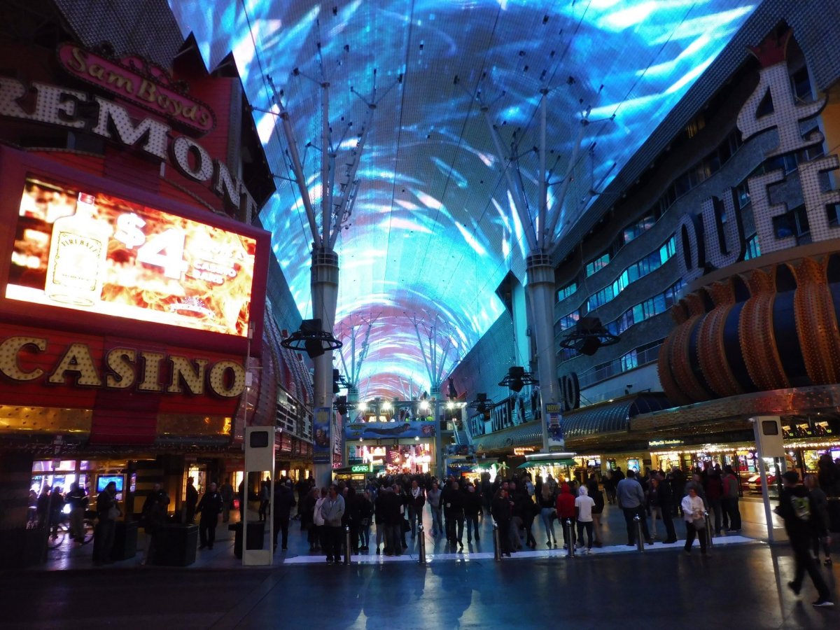 Ještě večer jsem vyrazil na krátký průzkum Stripu, do očí mě bily všudypřítomné neony a masy lidí, kteří korzovali po ulici. Následující den jsme jako milovníci výšek navštívili Stratosféru (vstup 20 USD), což je 185 m vysoká věž, kde je i vyhlídková plošina, ze které lze "obdivovat" okolní krajinu. Krajina je to sice vyprahlá, ale pro našince ne zcela běžná. Co se týká počasí, v listopadu teploty přes den dosahovaly pouze 15 st., v noci ještě méně. Zkusil jsem také štěstí v automatu, hodil jsem tam 10 USD a vše okamžitě prohrál (je to asi moc malá částka, aby člověk vyhrál - Jarda Jágr by mohl povídat, jak na to, prý se řídil zátopkovským heslem, když nemůžeš, přidej - myšleno tedy nikoliv výkon, ale peníze), inu, gambler ze mě asi (naštěstí) nebude, pomyslel jsem si. LV však naštěstí není jen o hraní, ale také o zábavě - v hotelu MGM vystupuje David Copperfield, můžeme zde vidět cirkus Cirque Le Soleil, svá angažmá tu mívají Céline Dion, Elton John nebo chlápek, jehož pražský koncert jsem předminulý rok vinou letu do Pekingu propásl a na kterého jsem se tím pádem velmi těšil.