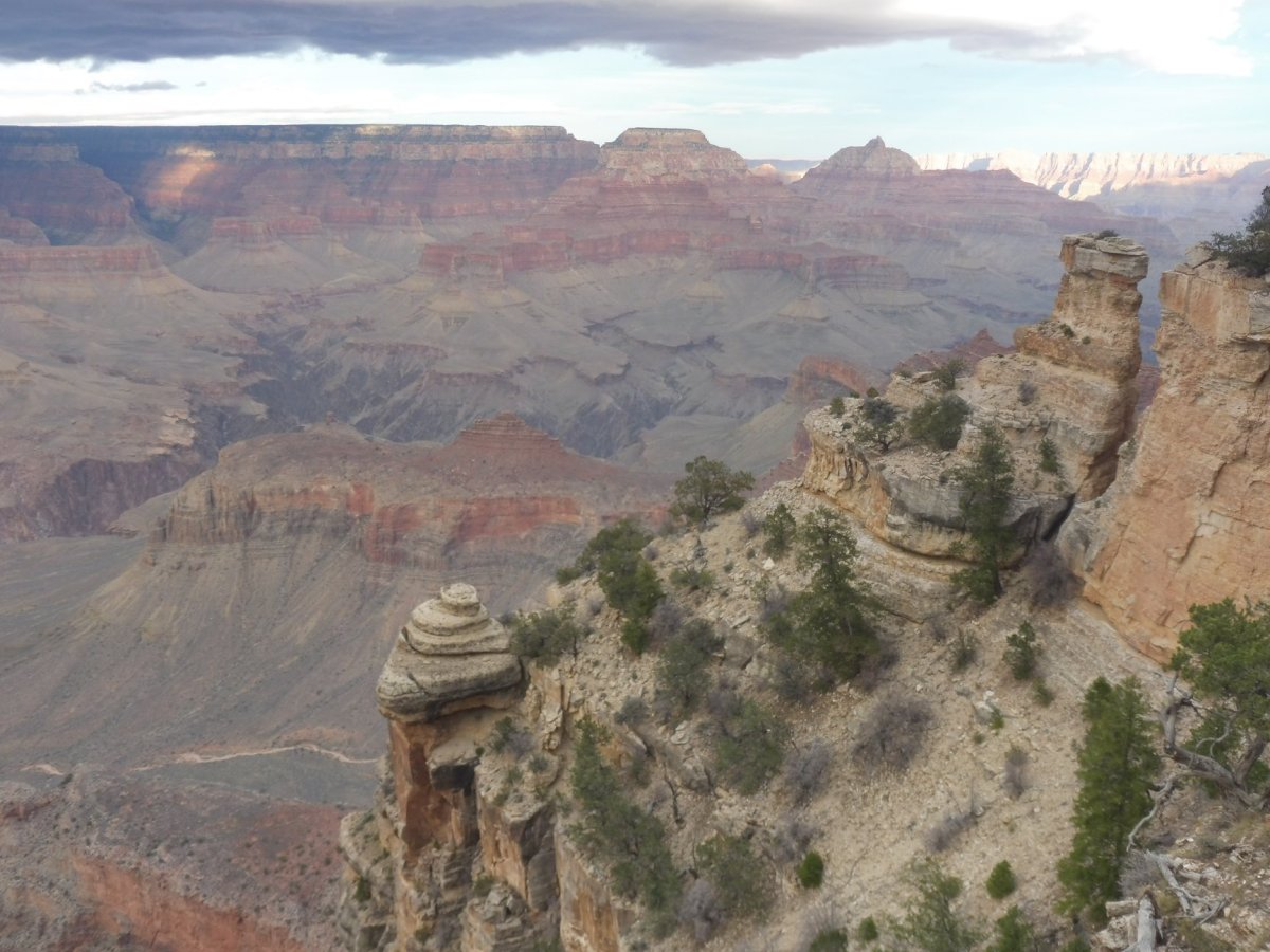 Na čtvrtek jsme si u společnosti GC Tours za 80 USD online (pouliční prodejci na Stripu prodávali zájezdy značně předražené) zakoupili výlet na Grand Canyon. Vyrazili jsme brzy ráno, v 6:40, nejprve jsme se krátce zastavili na Hooverově přehradě, další zastávka byla v arizonském Kingmanu a dále jsme pokračovali po místech na legendární Route 66, městečku Seligman. Arizonská krajina se mi místy velmi líbila, hlavně zasněžené hory na obzoru při jízdě směrem na Flagstaff, v městě Williams jsme se dali doleva a jeli směrem k Grand Canyon Village, cestou nebylo nic, co by připomínalo, kde se za chvíli ocitneme, pouze jakási křoviska či polokřoviska. Když jsme konečně dorazili na místo, tajil se nám dech. Grand Canyon je nepopsatelný. Dojem nekazil ani poletující sníh, bylo snad kolem 0 a místy se zvedal silný vítr. Nebylo proto radno chodit ke kraji, smrtelných úrazů zde již pár bylo. Vyčerpáni a vymrzlí jsme se do LV vrátili večer po deváté.