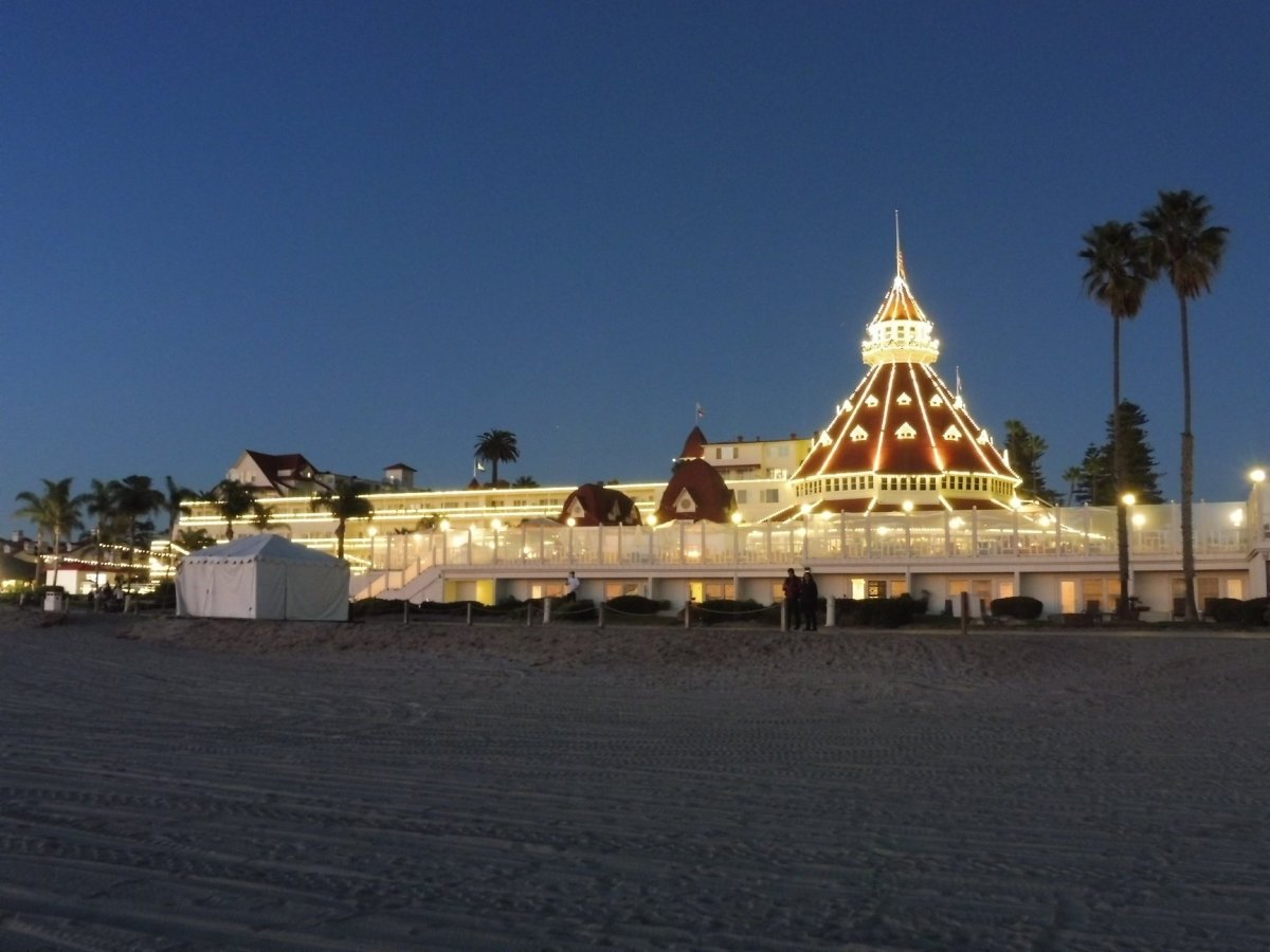 Jeden den jsme si rozhodli udělat výlet do San Diega. Ráno jsme již tolik nespěchali (byli jsme ucestovaní). Jeli jsme busem MHD po 7th ulici, kde začíná nechvalně známá čtvrť Skid Row a viděli obrovské množství stanů postavených na ulici a jejich obyvatele - bezdomovce (ta problematika je prý složitější, mnozí údajně pracují, ale nemají na nájmy). Na nádraží Greyhound (7th/Decatur) jsme trochu změnili plán, rozhodli jsme se, že nejdříve pojedeme k mexické hranici (San Ysidro), kde se nachází Las Americas Premium Outlet, dorazili jsme ale až asi v 11:00. Něco málo jsme sice nakoupili, ale nebyla to žádná sláva, vše bylo přebrané. Zdrželi jsme se tam déle, než jsme chtěli, asi do 15:30. Než jsme se dostali na Coronado Beach (hotel Coronado u této pláže je známý z filmu Někdo to rád horké), už se stmívalo. Nestihli jsme bohužel navštívit ani letadlovou loď USS Midway. Co se dá dělat, snad bude příště více času i na San Diego.