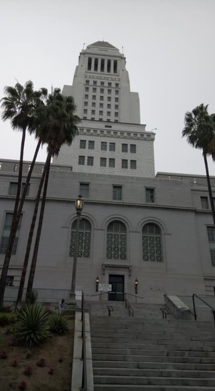 Následující den jsme zdarma navštívili vyhlídku na losangeleské radnici (City Hall Observation Deck). Mohli jsme kromě obrovského LA obdivovat i okolní horstvo - St. Gabriele Mountains.