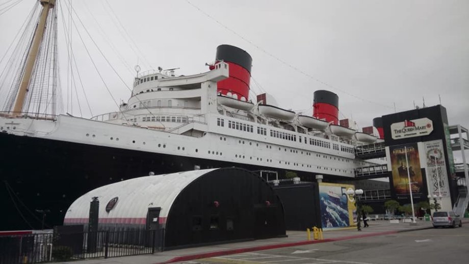 Poté jsme se tramvají (light rail, modrá linka) vydali na hodinovou cestu do města Long Beach, které je asi 30 km na jih od LA. Zde jsme navštívili zaoceánský parník Queen Mary, který již od roku 1967 slouží jako hotel. Za 23 USD jsme mohli spatřit i jeho útroby. Mohli jsme se podívat na kapitánský můstek i do strojovny v zadní části tohoto kolosu. Byla tam i výstavka o princezně Dianě. Poprvé jsem také mohl zažít promítání ve 4D, a to krátký vánoční příběh pro děti od studia Pixar (v sále např. i "sněžilo"). Čekal jsem spíše, že se bude promítat něco k historii QM. Duchy jsme tam naštěstí nespatřili (prý tam straší).