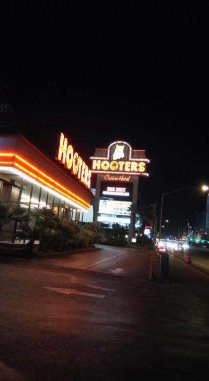 Nebyl již čas, dne 26.11. jsme museli letět do další naplánované destinace, kterou bylo Las Vegas, kde jsme měli strávit 5 nocí. LV nelze přehlédnout ani ze vzduchu. Při večerním přistání člověk náhle spatří shluk světel uprostřed pouštní temnoty. Nepřehlédnutelný je také známý bulvár - the Strip, kde se všechno odehrává. Hrací automat nás překvapil již v letištní hale. Po chvíli čekání na autobus MHD (v automatech lze koupit kromě 24 hodinových jízdenek za 8 USD i třídenní za 20 USD), jsme se octli před hotelem, který nám poskytl během té doby azyl - všude na světě (Manila, Sao Paulo, Gran Canaria, Moskva, Peking, Hong Kong) navštěvujeme podniky řetězce Hooters - tak proč bychom nemohli být ubytováni v Hooters Hotelu? K výběru přispěla také láce, tuším jen 650 Kč/osoba/noc, což je na americké poměry nevídané, roli hraje hlavně snaha o přilákání co nejvíce potencionálních hráčů.