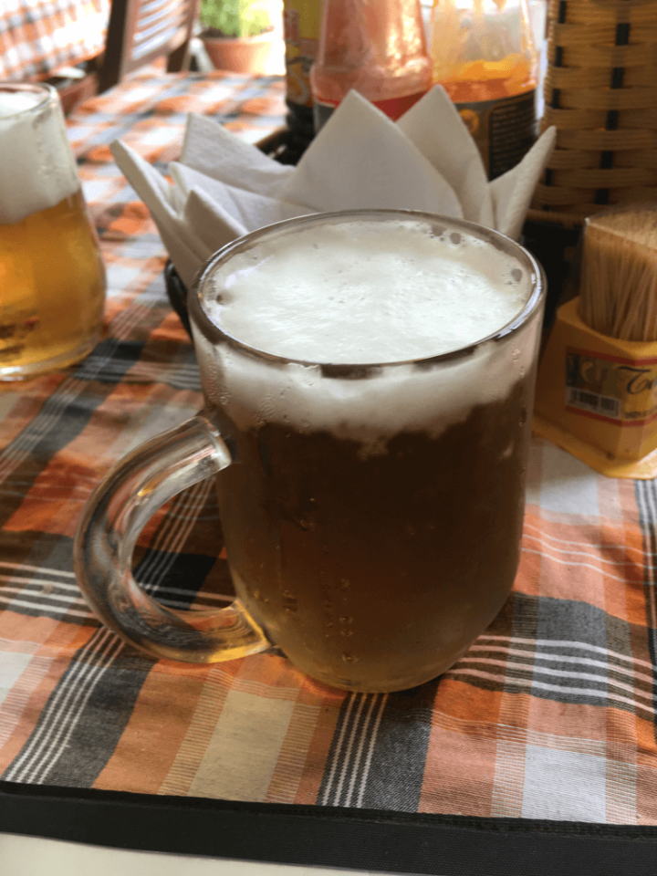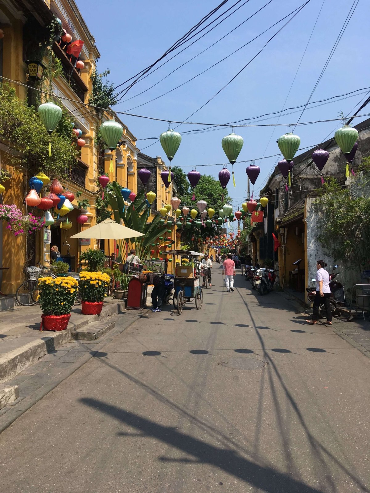 Sedame na skutry a popojizdime do mesta Hoi An, ktere je vyhlasene vsudypritomnymi lampionky a take jako centrum snad vsech vietnamskych krejcich. Mame sice v planu se sem o den pozdeji presunout na nasledujici dve noci, ale protoze si zde chci nechat usit oblek, tak si zde delame zastavku o den drive. Po ceste potkavame poprve ceduli s napisem fresh beer za 5k. To nemuzeme nechat bez povsimnuti a sedame na jidlo a slavne pivo bia hoi.