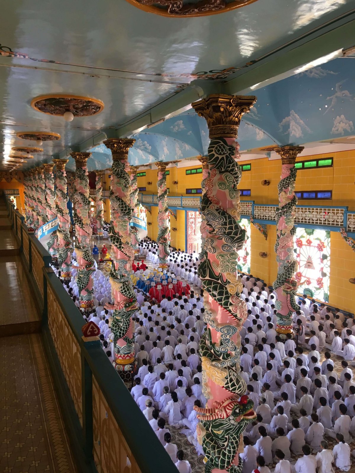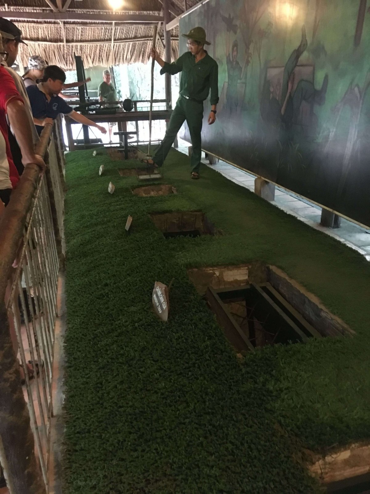 Prijizdime k Cu Chi, nechavam se zavrit do uplne miniaturniho vlezu do tunelu, nic pro klaustrofobiky. Jsou nam ukazovany vselijake pasti, ktere Vietnamci pouzivali proti vojakum USA, ochutnavame tapioku, ktera byla hlavni zdroj jidla vietnamske armady a prolejzame upravenou verzi tunelu pro turisty v hloubce asi 6 metru. Opravdu nic moc pocit a hlavne horko a vlhko. Po prohlidce sedame opet do autobusu a jedem smerem k chramu Cao Dai. Asi 90 let stary chram je trochu kycovite preplacane zklamani. Nabozenstvi je mixem katoliku, budhistu a jeste neceho. Prave probihaji modlitby, ktere jsou kazdy den 4x po dobu 45 minut. Mnisi, jestli se to tak da nazvat, jsou obleceni do bile a mistri bud do cervene, zlute nebo modre (krasne barvy - nekteri z vas urcite vedi 😀). Nasleduje obed, kde si vsimame zeny, ktera ma pred sebou nekolik plat vajec, ktera plni jakousi tekutinou. Pruvodce nam rika, ze se jedna o smes bilku a koreni, kterymi zpatky plni vajicka, kde zustal jen zloutek. Roman okamzite prohlasuje, ze to musi ochutnat. No nic sedame do busu zpet do saigonu a trochu pocitam, ze by jsme mozna mohli stihnout posledni tretinu semifinale. Prijizdime do Saigonu, jdeme do sport baru na Bui Vien, ale na olympijskem kanalu bezi curling. Trochu zklamani si ze slusnosti davame jedno pivko a nasledne zjistujeme, ze curling konci a prepinaji na hokej. Puvodni nadseni strida zklamani z vysledku.
