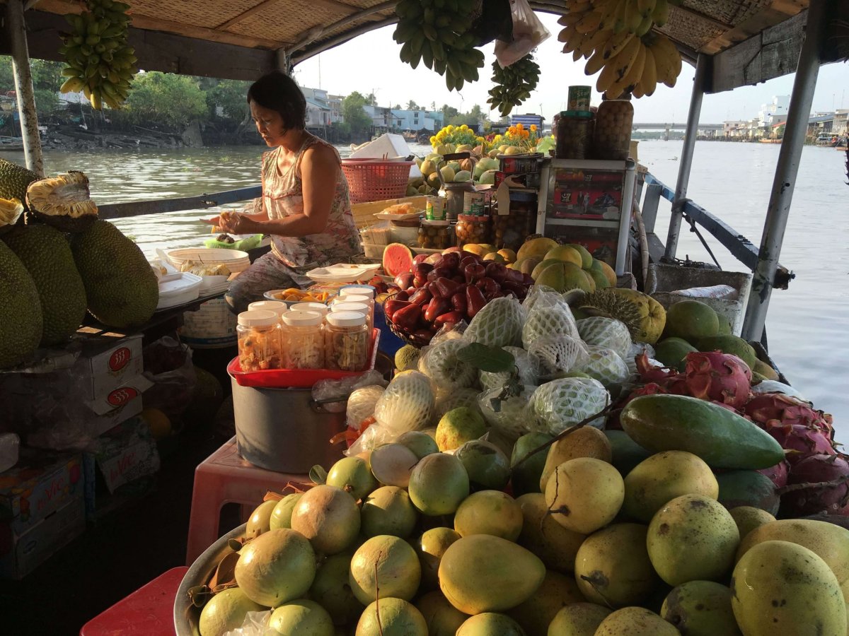 Po hodine cesty dorazime do mestecka Cai Be, sedame na lodku a odrazime se od brehu. Plovouci trhy jsou pro nas velkym zklamanim. Proplouvame pouze kolem dvou lodi, jedna nalozena banany a jedna melouny. Zadne dealovani ve smyslu: “tri melouny za dva trsy bananu”...“to ti nedam ty zlodeji”, se nekona. Prirazime akorat k jedne lodi kde dostavame ochutnat spousty exotickeho ovoce. Z toho co si pamatuji nazev jack fruit, durian, lici, samozrejme mango a ja nevim co vsechno jeste.