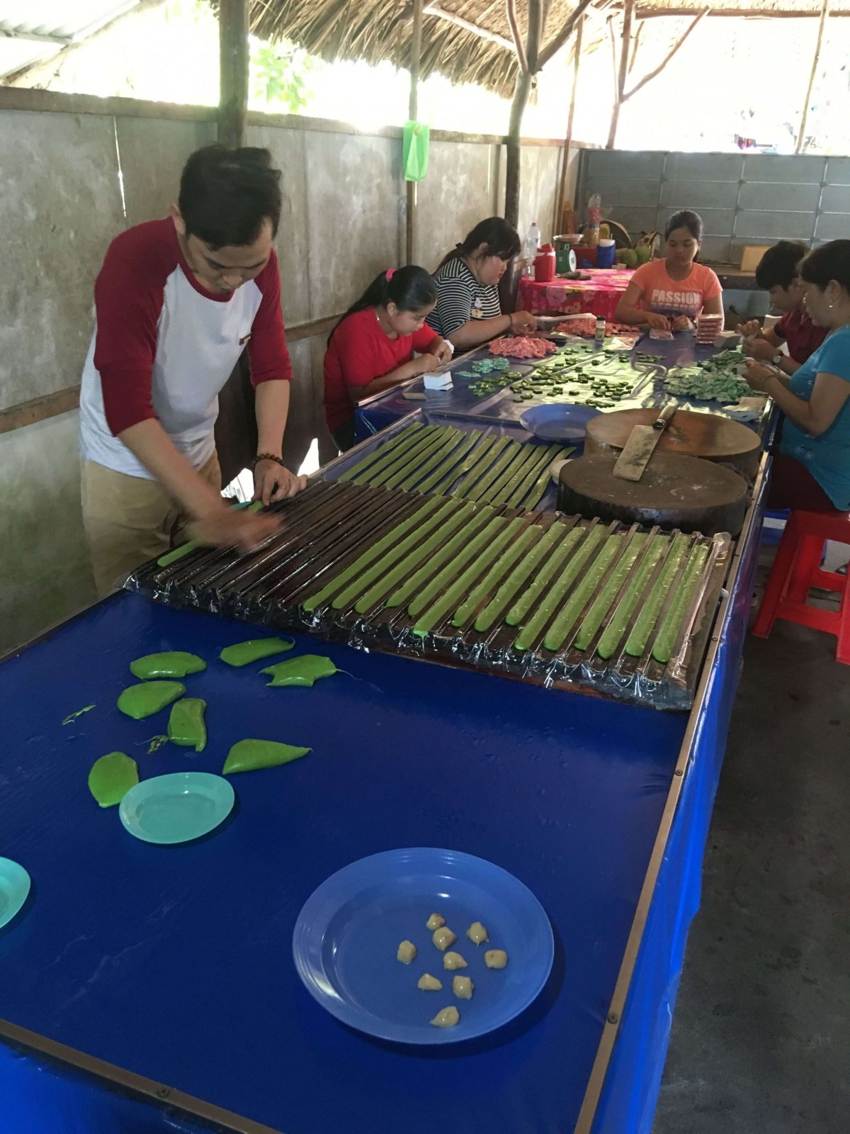 Trochu zklamany, ze tohle nebylo to co jsme chteli videt, sedame do auta a mirime zpatky do My Tho na lodku, ktera nas po Mekongu veze na Unicorn island. Predchozi zklamani je pryc. Na tomhle ostruvku je nam ukazovano jak se vyrabeji kokosove a ananasove sladkosti i s ochutnavkou. Vsechno rucni prace, pouze na michani hmoty pouzivaji motor. Je nam ukazana vyroba cokolady, dostavame ochutnat moc dobry medovy caj a k tomu nam popevuji mistni umelci za doprovodu jakysi strunnych nastroju. No, hudba nic moc, ale ze slusnosti davame tip kazdy 20k. Navsteva je zakoncena projizdkou na vratke lodce, kde kazdy na cestu dostvame typicky vietnamsky kloboucek. Pri plavbe se me pruvodce pta odkud jsme a k memu prekvapeni dokonce vi, ze se Ceskoslovensko rozdelilo na CR a Slovensko. Vetsinou nas porad vsichni znaji jeste jako cechoslovaky.