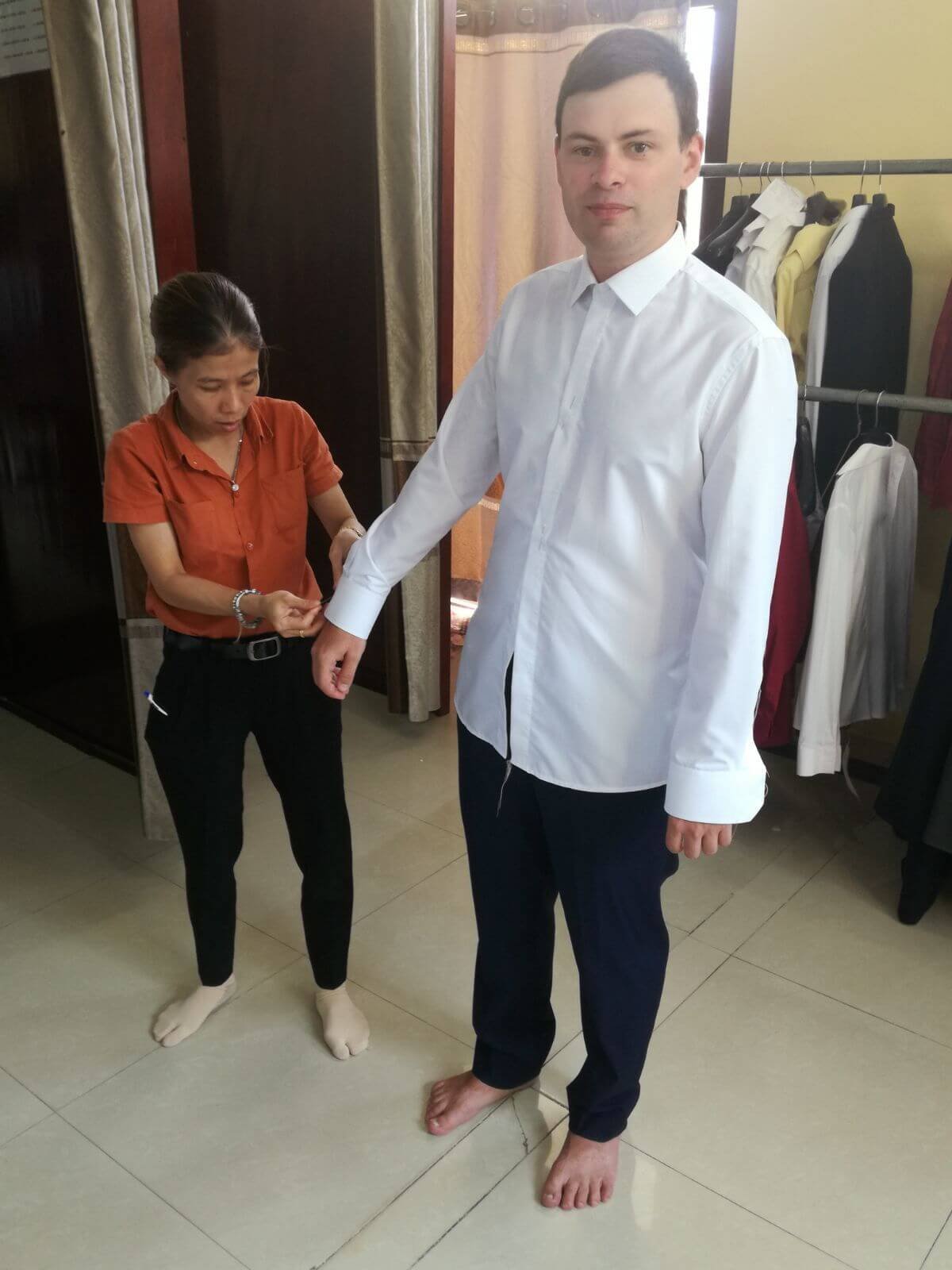 S vyberem krejcovstvi mi pomohl trip advisior a protoze jsme si sem udelali za timto ucelem vylet na motorkach jiz den predem, tak me ceka prvni zkouska. Drobna sympaticka vietnamka kolem mne poskakuje, spendlikuje odev a se slovy big butt, big belly me stridave placa pres zadek a bricho. 😀