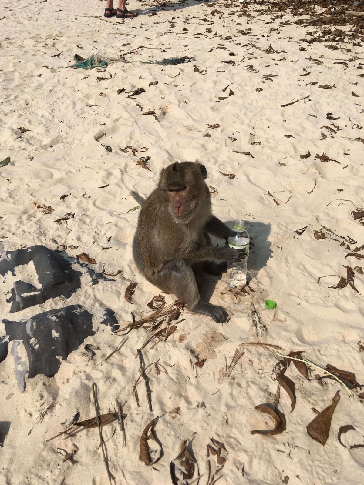 Vesele povzbuzeni kolik jsme prave usetrili penez se nechame odvezt k lodi. V cene byla zahrnuta projizdka na kajacich na ktere jsem si, vzhledem k memu velmi linemu stylu padlovani, vyslouzil od starika na vedlejsi lodce prezdivku relaxman. Nasledny obed ve Vietnamskem stylu (kazdy dostane misku ryze a dale si nabirate s mnoha chodu na co mate zrovna chut). Navsteva opiciho ostrova, kde opice kradou doslova vse k cemu jim date pristup. Romana to stalo lotosove bonbony, ktere mel volne zastrcene v bocni kapse batohu a jen se otocil zady uz patrili opicce. A nasledna koupacka, ktere jsme se z nasi skupiny zucastnili pouze ja a Roman, protoze na ostatni bylo trochu chladno.