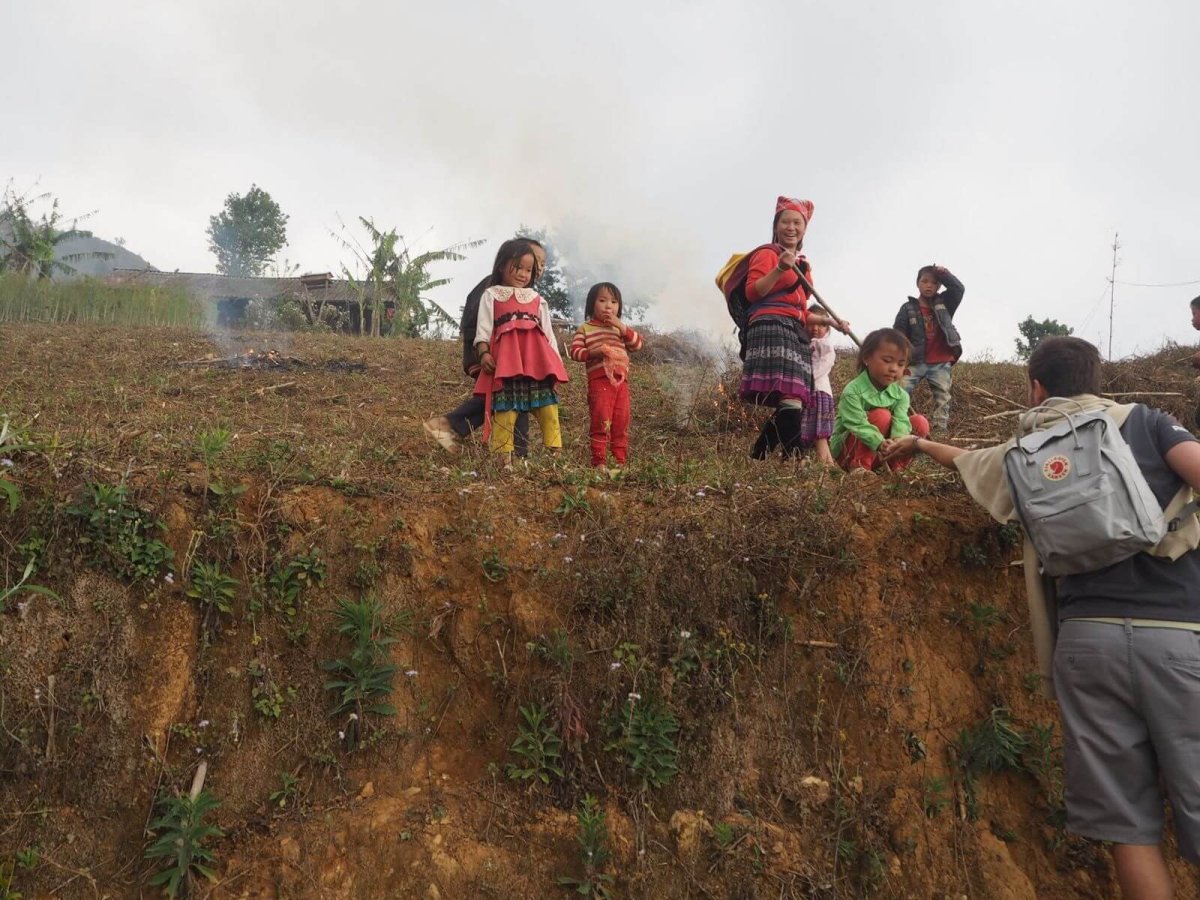 Plan jsme vymysleli takovy, ze sednem na motorku a po hlavni silnici se vydame do vesnice Xa La Pan Tan. Neptejte se me proc, proste byla na mape v dojezdove vzdalenosti. 😀 Nemelo moc smysl se pokouset prasnou a velmi strmou cestu zdolavat na skutru, ale presne o to se samozrejme pokousim. Po asi 7,5 metrech to vsak vzdavam a dal do vesnice uz pokracujeme po svych. Sice mam jeste nutkani se pro motorku vratim kdyz vidim par mistnich jak to vyjizdi s prstem v nose, ale nakonec skutecne usuzuji, ze vietnamci se s motorkou asi rovnou narodi a me motorkarske vlastnosti jsou na tenhle teren nedostacujici. Nakonec se z toho vyklubal vylet na cca 13km a prevysenim vice nez 800m, ale za ty panoramata to urcite stoji.