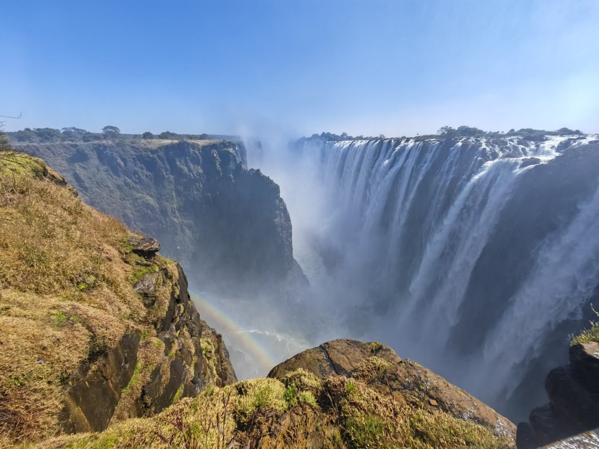 Městečko Victoria Falls relativně malé, ale poměrně čisté, restaurace na slušné úrovni, obchůdky, tourist office, vše koncentrované na konci městečka směrem k vodopádům. Všude po městě stojí taxi 5USD jednou chtěl pán 7 tak jsem ho protlemil a dal mu 5 i přesto mi cpal whatsapp, abych ho příště zavolal. Airalo aplikace na datovou eSIM nefungovalo prakticky vůbec. WIFI v každé restauraci i na ubytku bez problémů. Někde jsem četl, že se zde nedají vybrat peníze, ať vezete hotovost, karty že berou výjimečně, takže karty berou všechny restaurace, tourist office, vstup do parku.... no proklínal jsem toho démona, co tohle napsal, holt asi poplatné době. Vzhledem k počtu hotovosti kterou jsem měl, jsem vybírat v bankomatu nezkoušel, v Maunu v Botswaně bez problému.