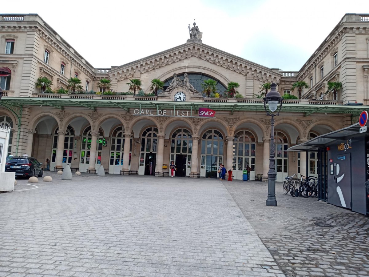 Projíždím na přesný čas kolem 10. Hodiny dopoledne vystupuji v Paříži Est. Což je typické Velké nádraží pro vysokorychlostní spoje od Paříže jezdící na východ od Paříže. . Východní části Francie , ale Například i do Německa.