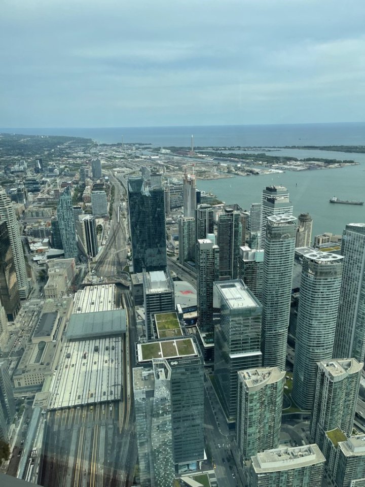 Ráno jsme vyrazili vstříc velkoměstu. Nejdřív, ale do obchoďáku sehnat simku. Na naší českou se dá z Kanady tak poslat smska nebo přijmout volání (18 korun za minutu), ale megabajt dat stojí 35 korun, a to fakt nechceš platit pár desítek tisíc za blbou navigaci a facebook. S trochou obtížnýho shánění kupuju od Shiksko-kanadskýho Inda (nebo indickýho Kanaďana, nevím sakra...?!) simku od Chatr 10 gb na měsíc za 70 dolarů. Docela mě pak překvapilo, že mi volali různý čísla z Vancouveru a Ontaria, kdoví, co mi to prodal, ale fungovala. a pak už jsme vyrazili směr Toronto-Downtown. Hrozně jsem měl vykulený oči z obrovských Highwayí. Provoz docela velkej, ale díky šířím zácpy nulový, v Praze by se mohli učit. Jede se mi pěkně.Dorážíme do centra a hledáme, kde zaparkovat. Trochu bloudím a objíždím dvakrát blok, žena je lehce nevrlá. Nakonec parkujeme v garážích na Station Street u Union Station. Parkování je trochu dražší, myslím, že hodina stojí asi 6 dolarů, ale zase mají denní zastropování. Po čtyřech hodinách už víc neplatíš. Jdeme na CN Tower, všude visí kanadský vlajky. Fotíme gigantickou vlajku před průchodem z nádraží a velikého datla na kmenu. Koukáme po všudypřítomných mrakodrapech. Fronta na CN Tower ubíhá rychle, stáli jsme tam asi půl hodinky. „May I see you vaccination certification…“ „jasně, my máme evropskej, tady je jméno a příjmení, můžete to porovnat s pasem…“ tohle děláme během dovolené ještě hodněkrát. Jsme puštěni a jedeme výtahem nahoru na vyhlídku do 350 metrů, roušky na puse. Výtah jede asi minutu, a je z něj vidět skrz okenní tabule, které tvoří dlouhou přímku, nekonečné Ontarijské jezero. „Beh, I´m starting to feel a bit dizzy, when I see that…“ říkám týpkovi, co stojí vedle mě. Okenní rámy tvoří během pohybu nepříjemnou diskotéku. Týpek se akorát blbě směje. Dorážíme nahoru na prstenec vyhlídky. Chodíme dokola, koukáme do všech směrů. Mrakodrapy jsou všude, pod námi jezero a městské letiště. „Co je, jsi nějaká zaražená.“ „Já se bojím, že do nás narazí to letadlo, co přistává…“ „Ale prosimtě, dyť je daleko.“ Dělám laskavost a fotím nějakej páreček, aby měli fotku na památku. Chodíme trochu dokola a nacházíme ceduli, že Praha je 6699 km daleko. To jsme teda pěkně daleko od domova. O patro níže je taky skleněná podlaha. Fotím si na ní botu, ale nestoupnu na ní, na to jsem podělanej až za ušima. „Hele dáme nějakej oběd ve městě nebo tady…?“ „Tak asi můžeme tady.“ Dáváme si Poutine a Fish&Chips. Říkám číslo stolečku platím kartou a za chvíli už to donáší. Musím přiznat, že jsem nepochopil ten systém jejich dýšek. Přímo při placení na terminálu se to člověka zeptá, jak velký chce nechat dýško 0 nebo 10-20%, myslím, že jsem nechal asi 15%, bylo to s obsluhou tak budiž, ale i tak ty 2 jídla z alá fast food vyšli na 40 dolarů. No ale zase si je dáváš ve 350 metrech nad zemí, tak to tak stojí. „Ukaž, dej mi to ochutnat… fuj to je prasárna, hranolky se serjrem a uho.“ Mě to chutná, kanadský národní jídlo, občas na něj chodím od tý doby v Karlíně. Dojídáme oběd a jedeme výtahem dolů. Hned pod CN se nachází další atrakce, Ripley´s Aquarium. Zase kontrolujou vakcinaci. Jdeme dovnitř, obrovský akvárium, jsou tu všemožný rybičky, želvy, mořští koníci, žraloci, chobotničky a nevím co všechno dalšího, co žije v moři. Po hodince vylézáme ven. Ještě, že půjdeme kousek směrem k jezeru. Dojdeme k místnímu muzeu železnice kde je vystavených pěkných pár vlaků, které znám jen z filmů. Hezká podívaná. Pořídíme pár fotek vlaků a taky vyfotíme policii na koních. Začíná pršet a zjišťujeme, že k jezeru asi nedojdeme. Schováme se na zastávce a čekáme až trochu přestane. Už je pozdní odpoledne a dneska to balíme. Jedeme na nový ubytování. Máme rozlehlý sklepní apartmán u indické rodiny ve Scarborough, asi 20 km od centra Toronta. Docela se divím, jak je takový kanadský domek akorát lehká dřevostavba. Nechápu, jak to může vydržet v zimě těch běžných 20 pod nulou. Vybalíme se a vyrážíme na první větší nákup. Wallmart, zase něco co znám jenom z televize. Prolézáme ho a kupujeme nějaké potraviny. „Hele tady nemají žádnej salám jako nás, 10-20 dkg. Já jsem našla šunku, 2 kilovou.“ 2 kilová šunka stála 10dolarů, měl jsem z toho druhý Vánoce ještě do konce dovolené a vezli jsme jí celou dobu s sebou.