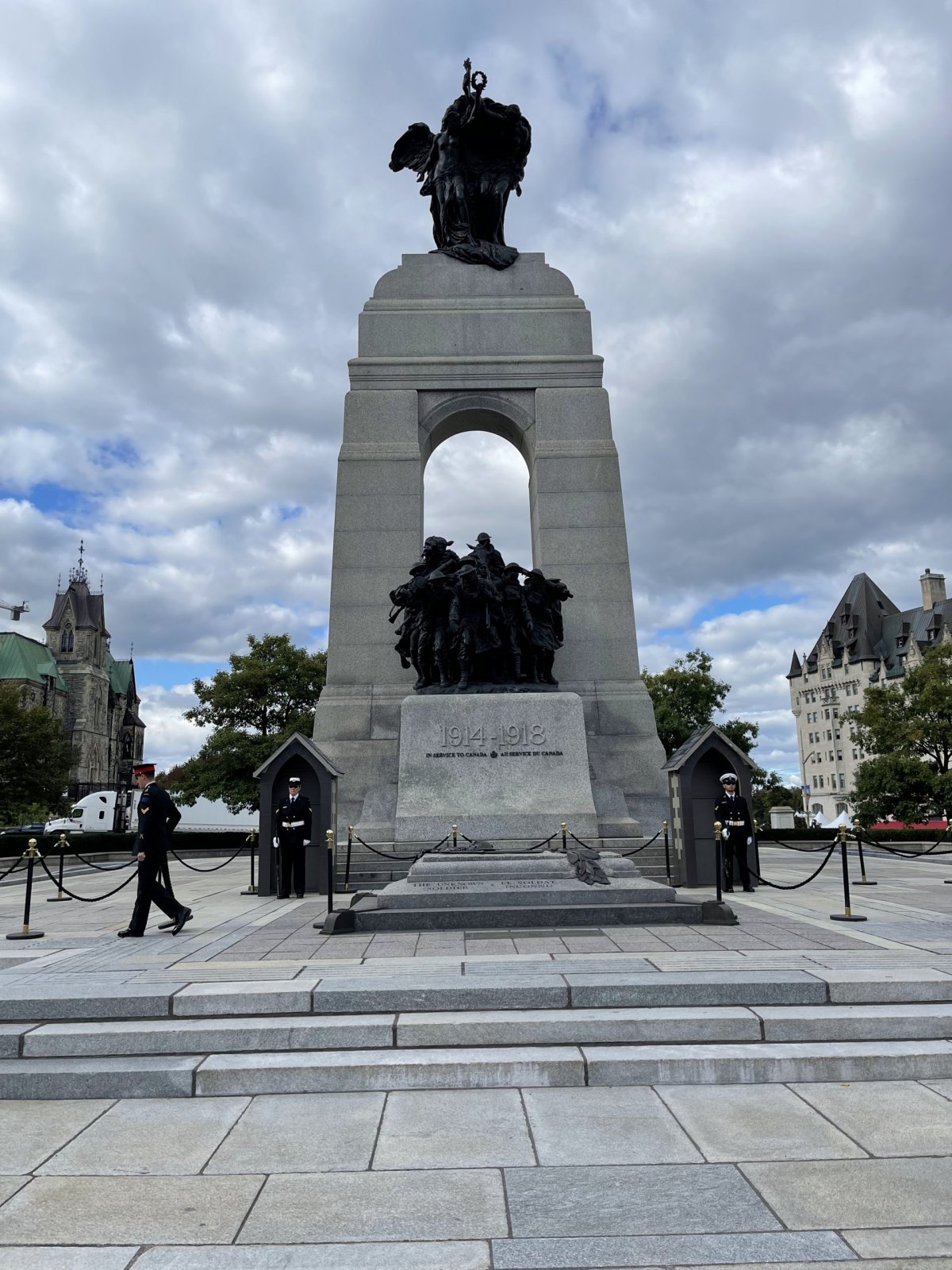 Sedmý den cesty jsme nejprve vyrazili do Canadian War Museum. Prohlídli jsme si expozici okolo kanadské armády a její účasti ve válkách. Bylo to poučné, protože jsme aspoň něco trochu zjistili ohledně kanadské historie. Velmi zjednodušeně je historie Kanady protkána přeneseným pokračováním stoleté války Anglie proti Francii z Evropy. Částečnou nápravu zjednal až Quebec Act z roku 1774, kdy byla v Quebecu uznána francouzština jako oficiální jazyk a uznáno katolictví. Ottawu už jsem neměl tolik naplánovanou, ale měl jsem tu jeden zlatý hřeb našeho zájezdu. Šli jsme večer na hokej. Hrála Ottawa Senators proti Montréal Canadiens, derby. Hala Canadien Tire Centre se nachází asi 20 km od centra Ottawy na předměstí a má kapacitu přes 19 tisíc lidí. Dorazili jsme ke stadionu a byla celkem slušná zácpa, ikdyž to byla jen příprava, NHL startovala asi za 14 dní, byl jsem moc rád, že na mě ta atmosféra toho prostředí dýchne. Na zápase mohlo být takových 5-7 tisíc lidí. Ze začátku zaznělo „Oh Canada…“ bylo hezké poslechnout si naživo zpívanou hymnu. Ze známějších hráčů mi z Ottawy utkvěli v paměti Drake Batherson, Thomas Chabot a Tim Stützle, za Montréal nastoupil náš litvínovský Jan Myšák, ale Montreál si moc nepamatuju, protože hráli hrozně a dostali 7-2. Po hokeji jsme zase měli trošku problém vyjet z parkoviště. Že se ale vyhrálo fanoušci měli dobrou náladu, a tak výjezd doprovázelo obligátní hokejové troubení.