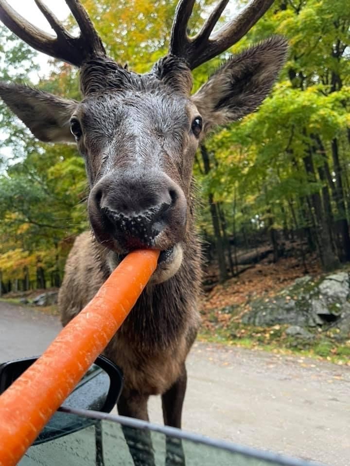 Osmý den jsme vyrazili přes most směr Gatineau… „Ty jo, co to je?! Jiný semafory, jiný značky, francouzština?!“ Vítejte v Quebecu. Uháníme dál cestou do Montreálu, není to nijak daleko, necelých 200 km a cestou zastavujeme v Montebelu v Parcu Ómega. Tohle byl asi nejlepší a nejmilejší zážitek z celé dovolené. Je to takové safari, kde jezdíte autem a krmíte v oboře zvěř, která v Kanadě žije. Všechny ty Deery a Reindeery a Moose, prostě srnky a podobné chodí k vám k autu a natahují se do oken pro zakoupenou mrkev. “Just don´t feed the buffalo, ok…“ „No, to by mě ani nenapadlo.“ Pak tam mají vlky, medvědy, bizony, lišky, prasata, prostě všechno možné, co žije v kanadské divočině. „Pojď si pro mrkvičku, hiiii honey…“ Srnka se nám natahuje do okna, občas se jí leknu. Je lehce deštivý říjnový den, listy javorů jsou krásně červeno hnědé a je nám fajn. Do Montreálu dorážíme až navečer okolo šesté. Ubytujeme se, tentokrát v apartmánu nad restaurací po točitém schodišti nahoru a jdeme akorát sehnat něco k večeři a spát.