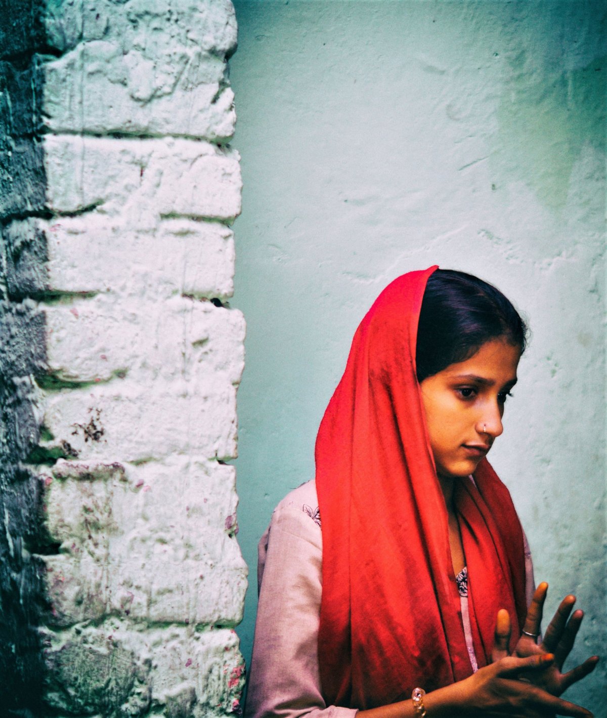 Dům, vlastně jedna potemnělá místnost 4x3 bez dveří. Voní kadidlem a přeslazeným dívčím parfémem. Jedna postel. Jeden kýbl na vodu. Jeden stůl a několik židlí. Jedna televize. Jeden kotlík, ohniště. A po zdech police plné věcí, které k životu potřebují. Já, pět žen a neurčitý počet dětí v tom všem. Anaya, tak se jmenuje paní domácí, mi vše ukazuje, jako kdyby to bylo její království. A taky že je. Kamarádky ji hindštinou doplňují, pořád se smějí. Tu jsou poklice, tady má rýži. A tady spí, je jich celkem sedm. Sedm. Na jedné posteli z klacků, místo roštu jakási provazová síť, uprostřed naházené kusy molitanů. Usmívá se, snad ani nevnímá, že já jsem jako v Jiříkově vidění.