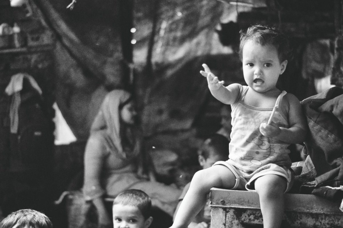 Jedna, dva, tři. Nevím, do kolika bych napočítal, jak dlouho jsem si užíval teorie relativity v praxi. Vše dá do pohybu dětský smích, který přijde jakoby odnikud. Jo, dětem nic neunikne. Kor ne blonďák v jejich ulici. Malá, okatá, ušmudlaná holčička se nalepí k mému boku jako klíště. Vzhlédne ke mně jako ke svému bílému hrdinovi a ten její zářivý úsměv všechno mění. „Hi, I am Kiri.” Holka s náušničkou v nose, co se jmenuje jako dobře roztíratelný sýr, mne naprosto odzbrojí. Je to láska na první pohled, o tom žádná. Vidí můj aparát a chce fotku. „Prosím." Pak se v displeji foťáku prohlíží jako v malém zrcadle. Když k ní poklekám, abychom si byli rovni, a po menších zdvořilostních ceremoniích jí vtisknu do dlaně gumové medvídky, pohladí mne po nose a pak za pištivého: „Thank you!” zdrhne i se svou kořistí do bludiště slumu.