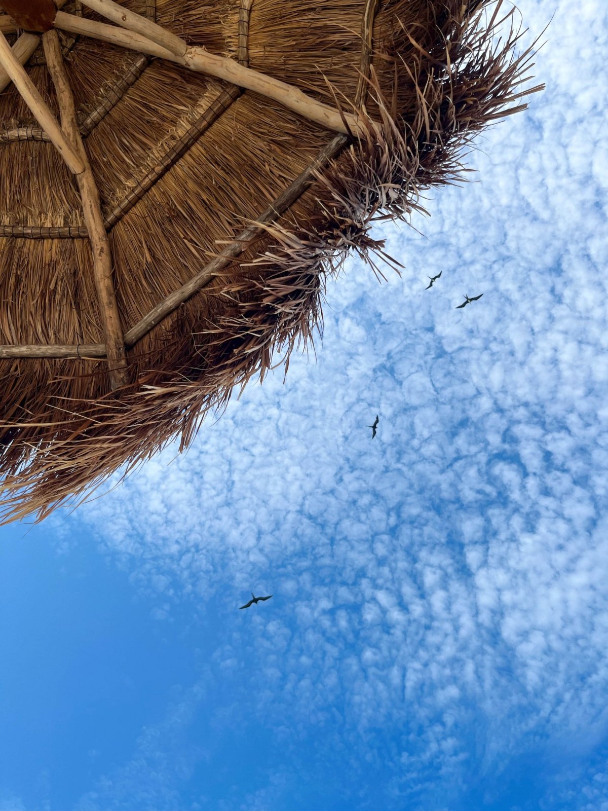 Ráno nás vyzvedla jedna z bílých dodávek a dovezla nás poblíž Cancúnu a společně s pár dalšími cestovateli a průvodkyní jsme si dali příjemnou snídani s výhledem na moře a od té doby mě, myslím, začalo mých pár sledujících na sociálních sítích v lednu nenávidět. Chápu! Potom jsme se lodí přesunuli na Isla Contoy. Isla Contoy je chráněná přírodní rezervace asi 40 minut lodí od pobřeží a nesmíte se ani namazat opalovacím krémem, abyste nepoškodili místní přírodu. Contoy je prostě nádhera, za mě jedno z nejhezčích míst vůbec, co jsem kdy viděla, kdybych fotila do katalogu pro cestovku, tak určitě vyrazím tam. Nádherná malá pláž s palmami, azurová teplá voda a desítky fregat kroužící nad vámi. Na místě jsou suché záchody a lodí přivezli oběd, jinak se tam nachází jenom maják a taky taková budova, která mi připomínala uvítací budovu v Jurském parku. Ostrov je možné projít jedině s průvodcem, pozor na spoustu komárů, které tam určitě potkáte (repelent se nesmí používat stejně jako opalovák), po cestě potkáte různé leguány všech druhů, ptáky (jedná se o ptačí rezervaci) a prý občas i hady.