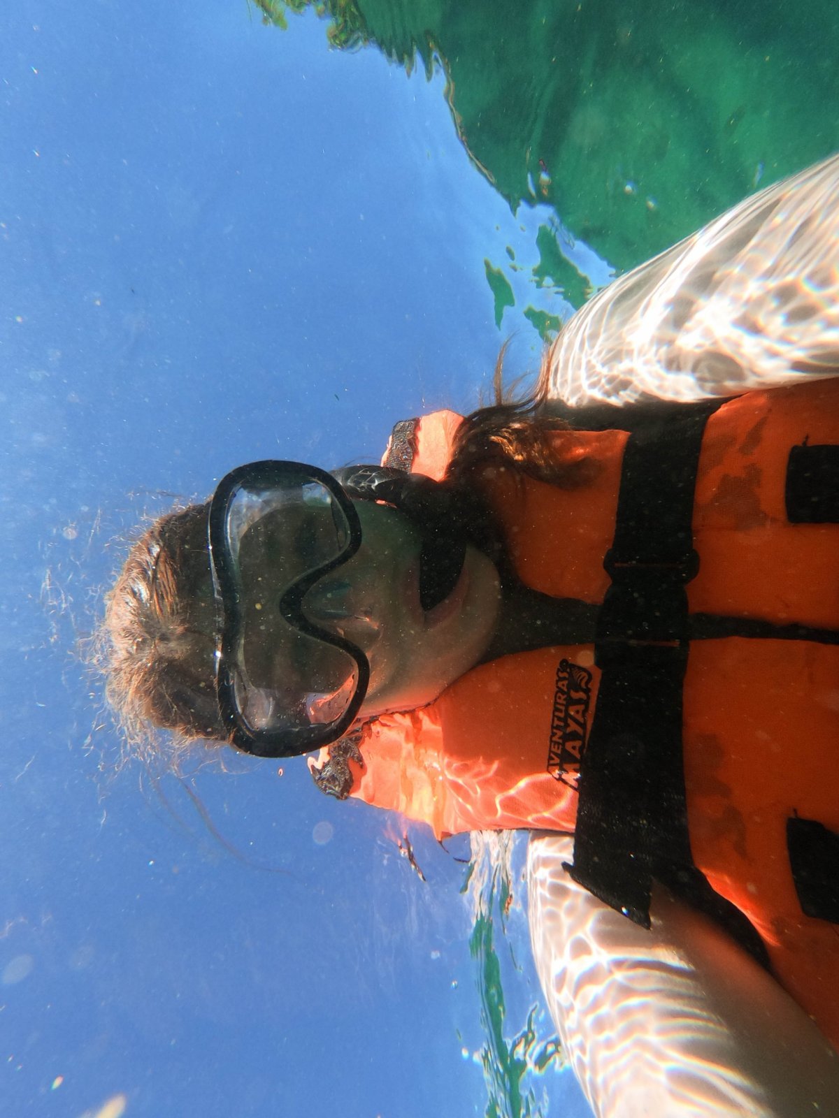 Potom nás čekalo šnorchlování, neměly jsme žádná velká očekávání, bylo celkem větrno a nejely jsme na žádný předražený výlet na pozorování konkrétních zvířátek. Co se ale nestalo, tak nám mexiční bohové přáli a my jsme měly tu šanci vidět rejnoky, spoustu ryb a taky mořské želvy, naprostá nádhera vidět tahle stvoření ve volné přírodě jinak než z televize s plastovým brčkem v nose želvy (jo, fuj), za mě životní zážitek se koukat na želvu z 15 cm vzdálenosti.